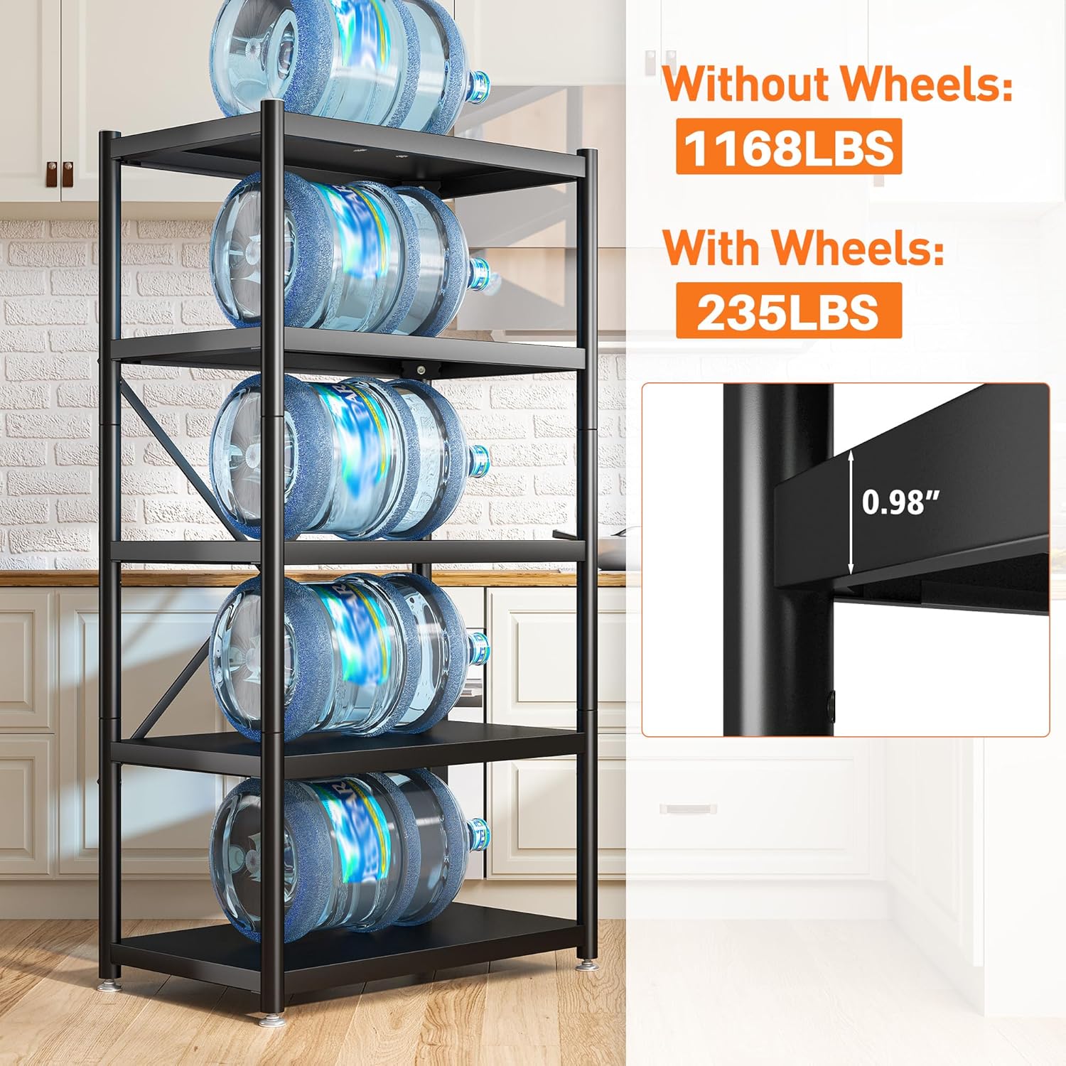 REIBII 5 Tier Metal Shelving Unit Load 1168LBS,Storage Shelves with Wheels,Wire Garage Shelving Commercial Shelf Organizer for Laundry Kitchen Pantry Closet Living Room,23.6" W X 15.7" D X 65.4" H