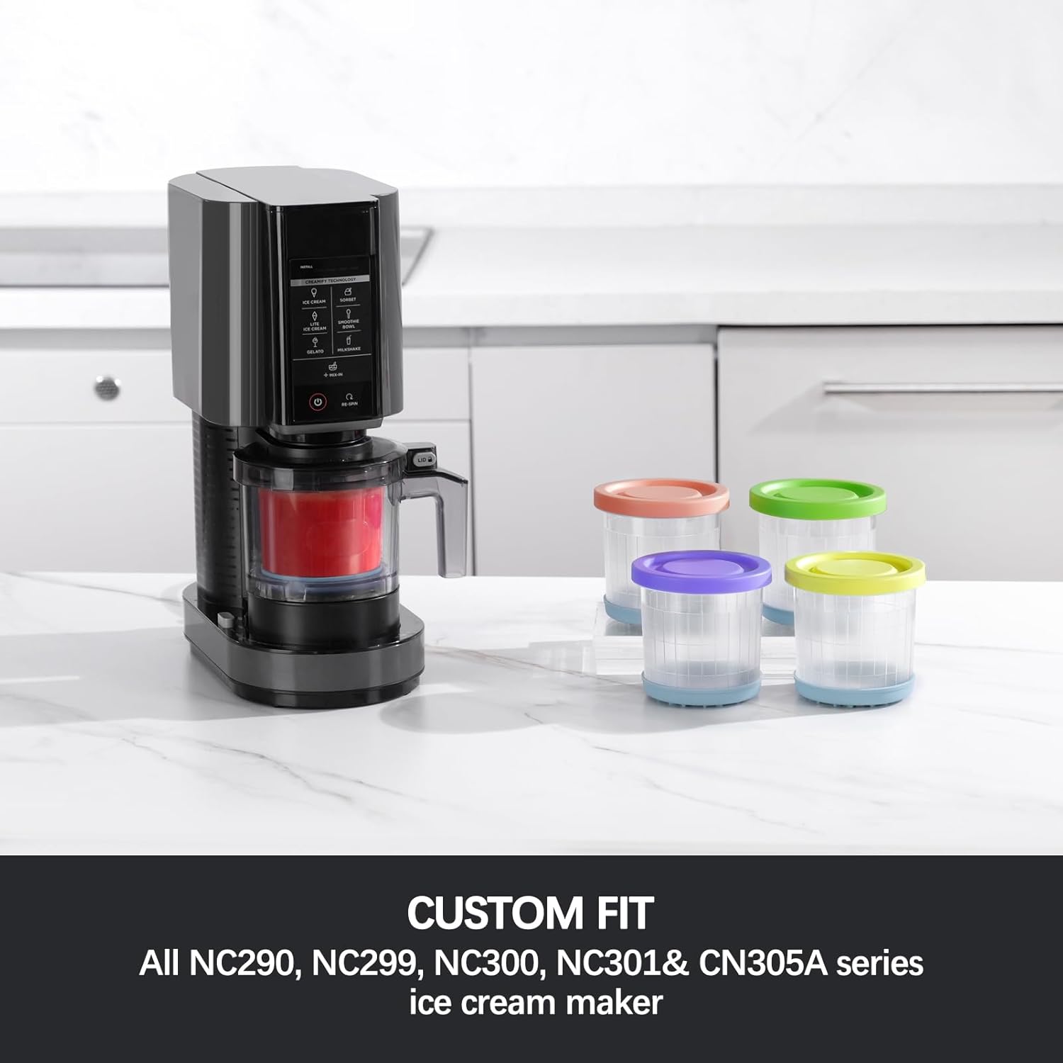 - UPGRADED DESIGN: The enhanced silicone notches seamlessly fit with the creami ninja ice cream maker machine outerbowl, ensuring an easy transformation to a soft serve creamy texture within minutes every cups