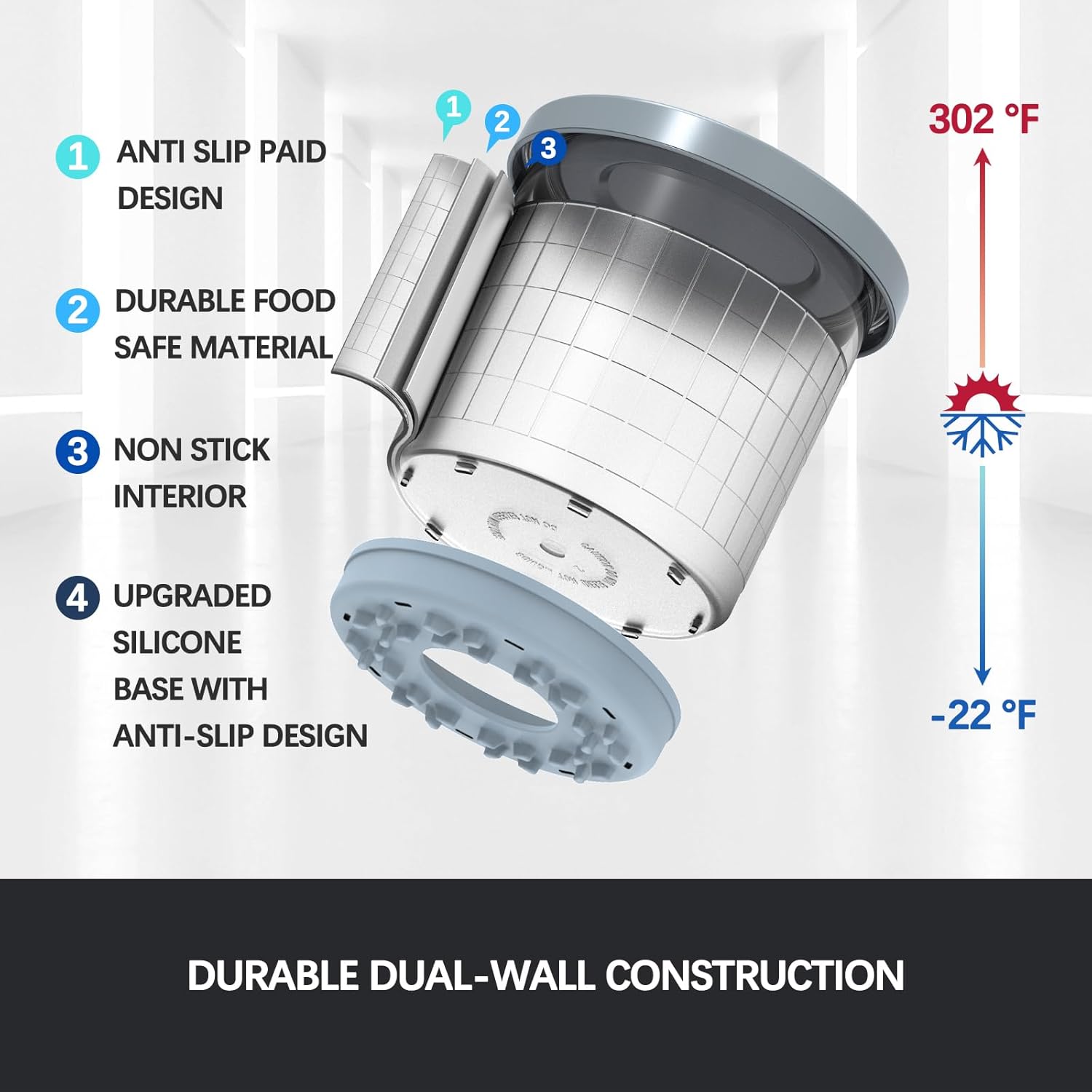 - PREMIUM QUALITY: Experience ultimate durability with dual-wall constructed replacement ninja creami containers. Anti-slip wall and tight seal lid adds both style and functionality. Crafted from food-safe, BPA-free material. Allowing you to have extra pints ready to serve whenever cravings strike
