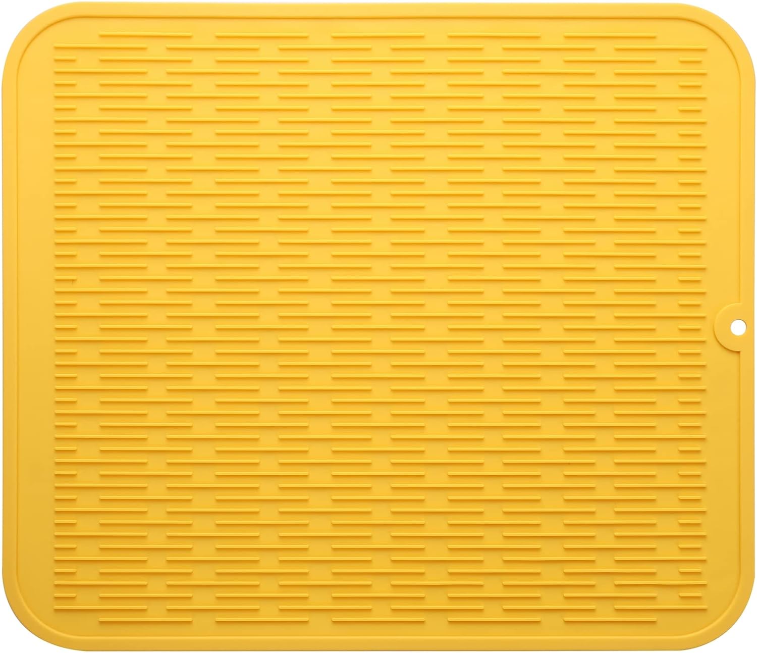 Silicone Dish Drying Mat for Multiple Usage,Easy clean,Eco-friendly,Heat-resistant Silicone Mat for Kitchen Counter or Sink,Refrigerator or Drawer Liner Yellow XL 18 inches x 16 inches