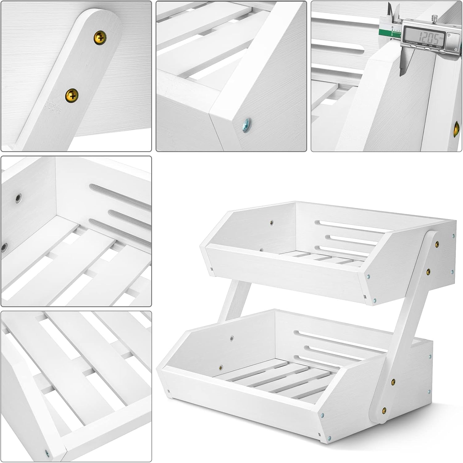 - Ideal Storage Basket: The two-tier fruit stand has a top fruit holder size of 11.8"L x 7.5"W and a bottom fruit stand size of 11.8"L x 9.1"W. It has a total height of 10.6 inches, making it an ideal storage solution for your fruits and vegetables. Its vintage and elegant dynamic style can meet most decoration needs, making it a perfect gift or addition to any kitchen. Upgrade your kitchen organization with our bamboo fruit basket today!