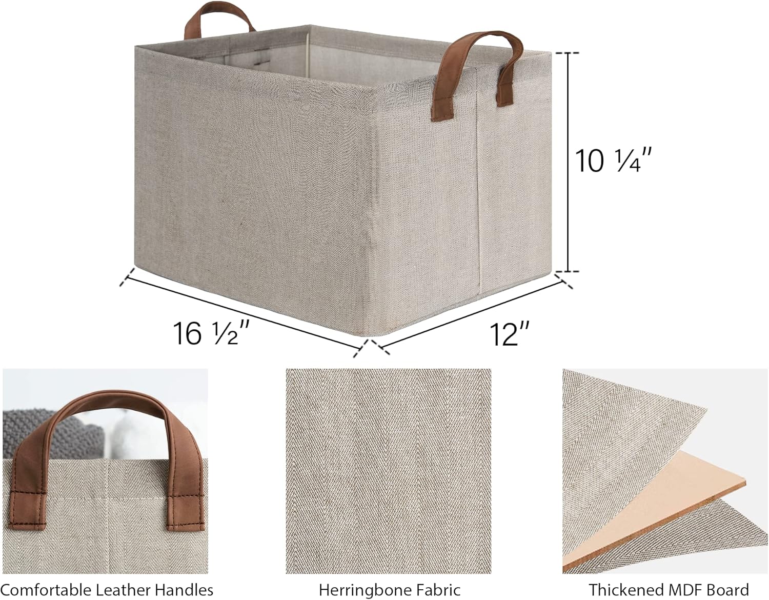 - Feature a modern design and 2 reinforced sewn-in handles, making these baskets easy to carry.