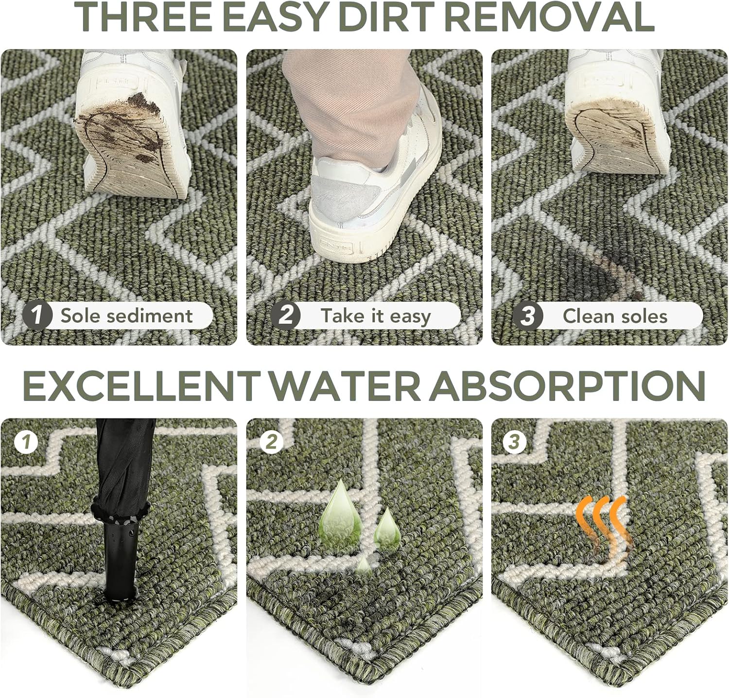 - EASY TO CLEAN: The unique rib fabric design removes dirt or sand easily. When your kitchen mats get dirty, first shake it off outdoors or over your garbage bins, then sweep with a broom or vacuum regularly or use a garden hose to rinse the mat outdoors. For deeper clean: machine washable, use water under 86 (β) / 30 (β). Do not iron. Do not bleach. Do not expose it to the sun for a long time.