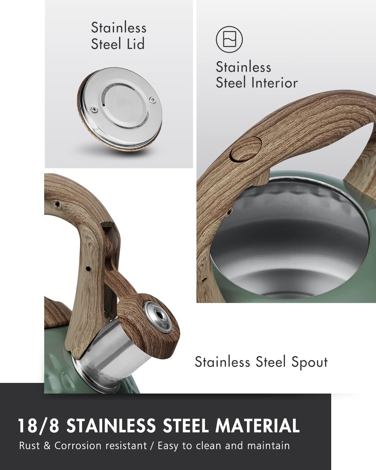 - Anti-Rust Finish - Stylish tea kettle electroplated for longevity. Professional food grade finish and stainless steel craftsmanship, ensures this kettle is rust & corrosion resistant.