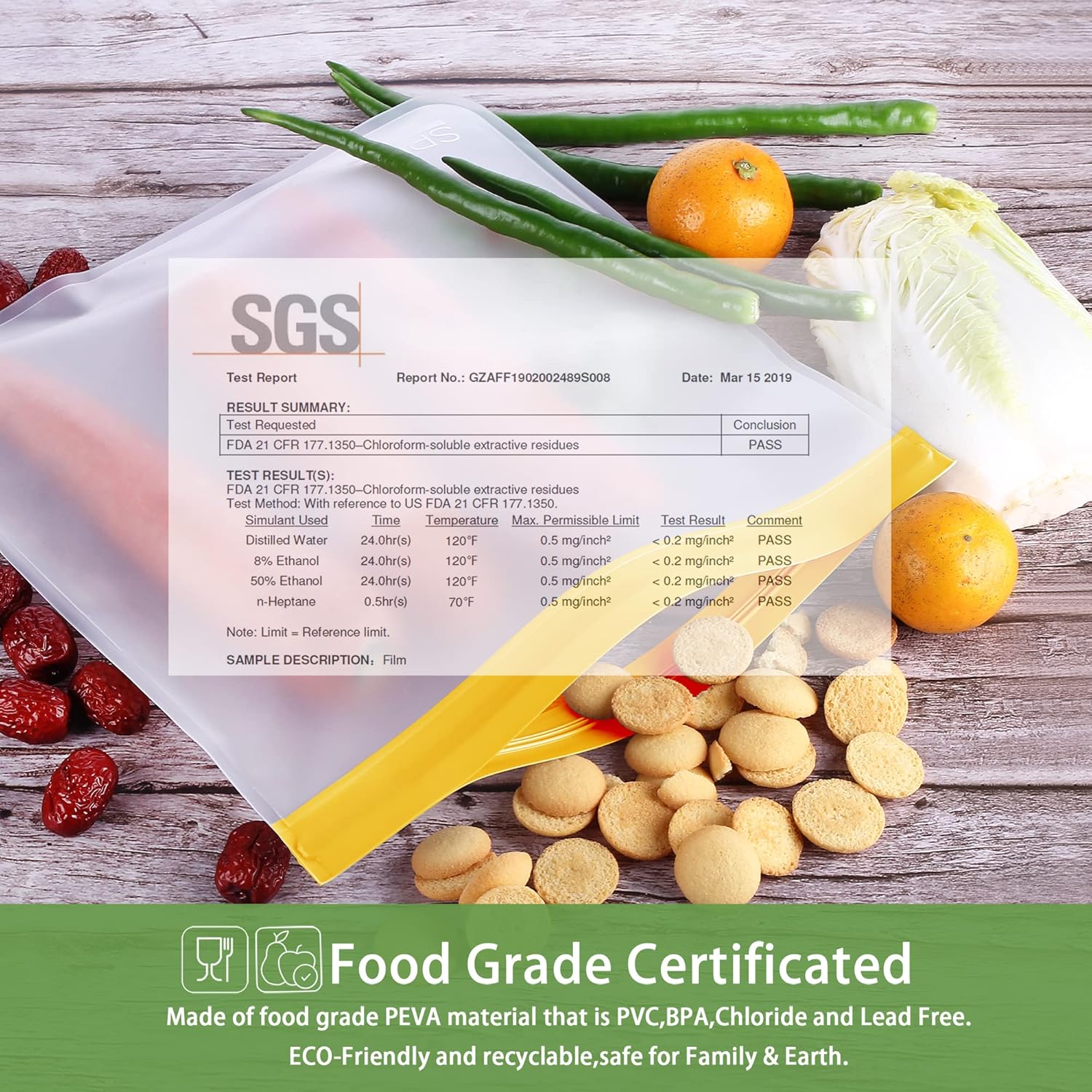 - ăFOOD GRADE MATERIALă Choose SPLF brand for TRULY food-grade reusable storage bags. Made of food-grade PEVA material that is PVC, BPA, Chloride and Lead free. Healthy and safe for family and earth.