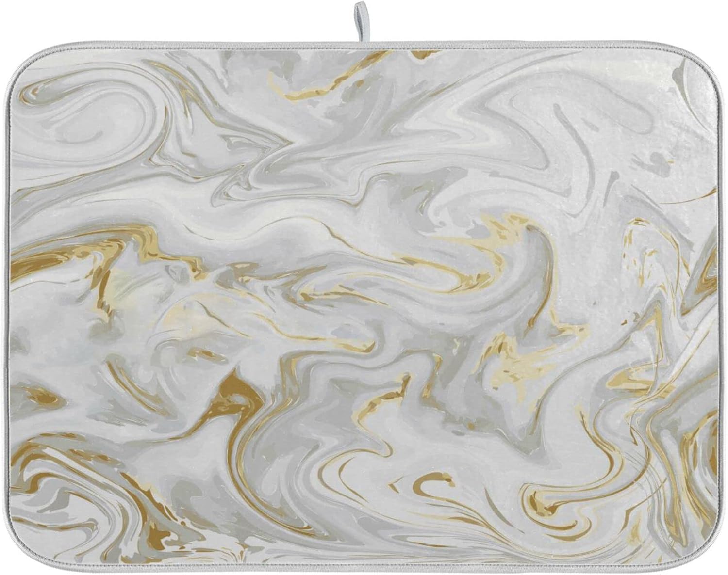 White Grey Gold Marble Fluid Dish Drying Mat for Kitchen Counter Absorbent Microfiber Drying Pad, Medium 16x18 in, Reversible Drainer Mats