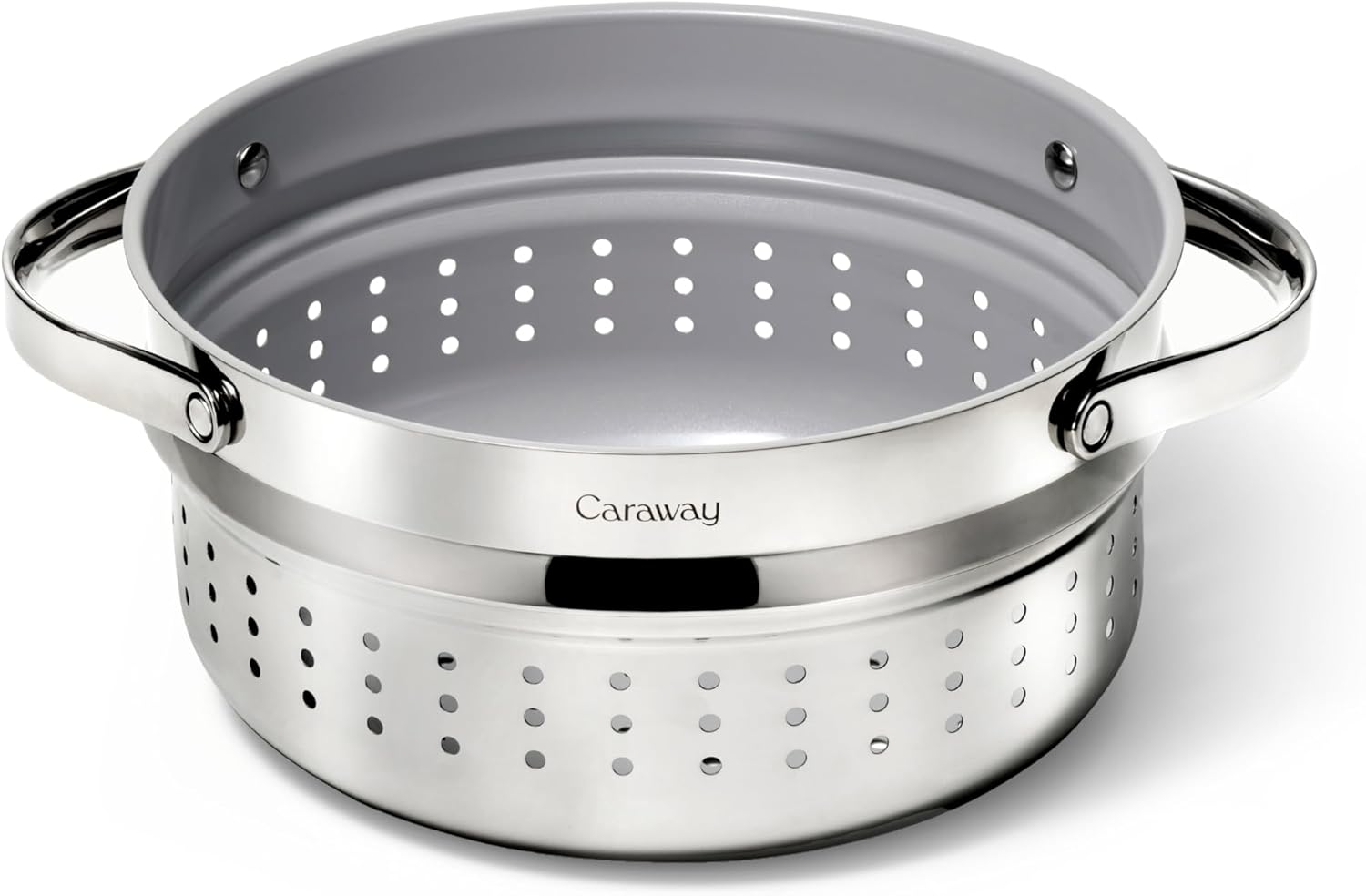 - DURABLE CONSTRUCTION: Made with high-quality stainless steel, the Caraway Steamer for pots is designed to withstand the rigors of everyday use, ensuring that it will be a long-lasting addition to your kitchen.