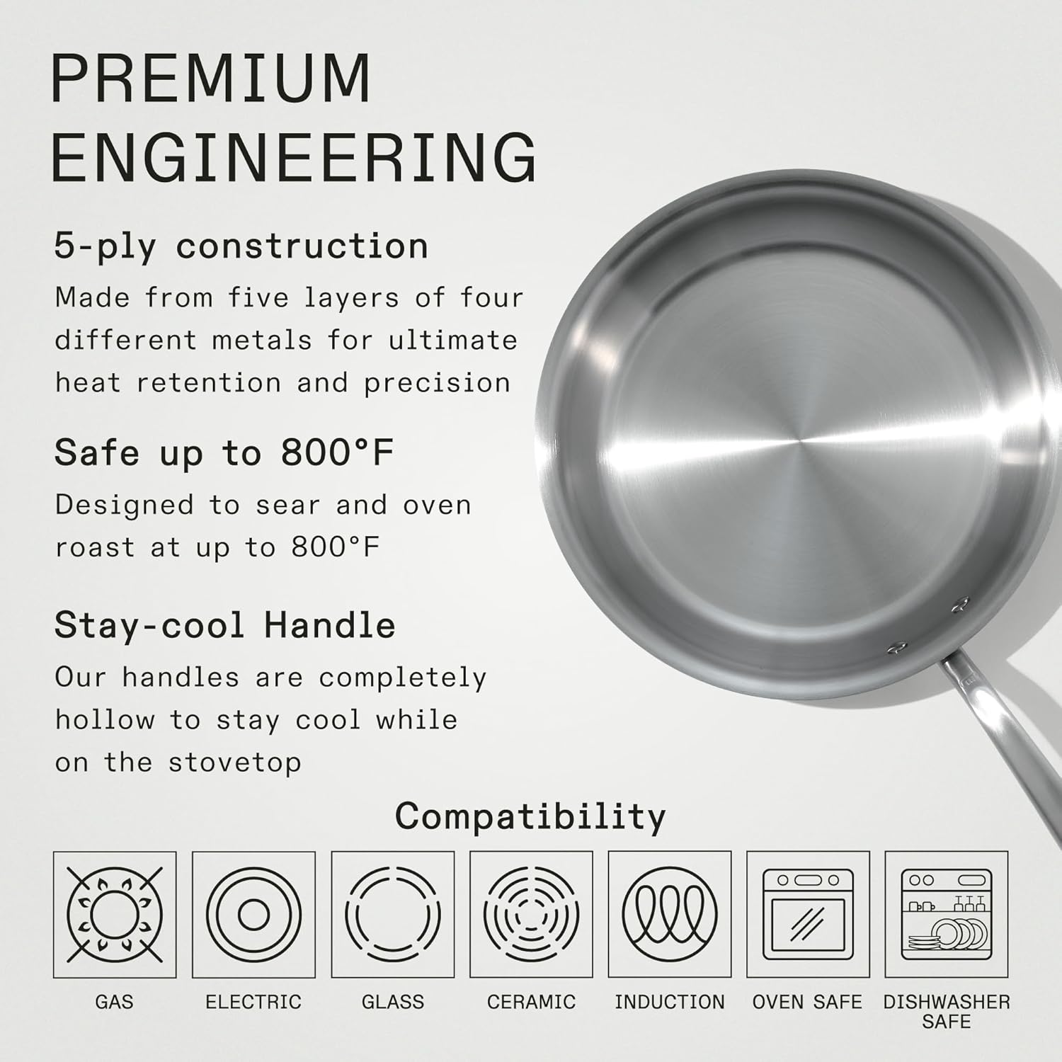 - Superior Quality - Made from 5 layers of premium metal for professional-quality heat distribution