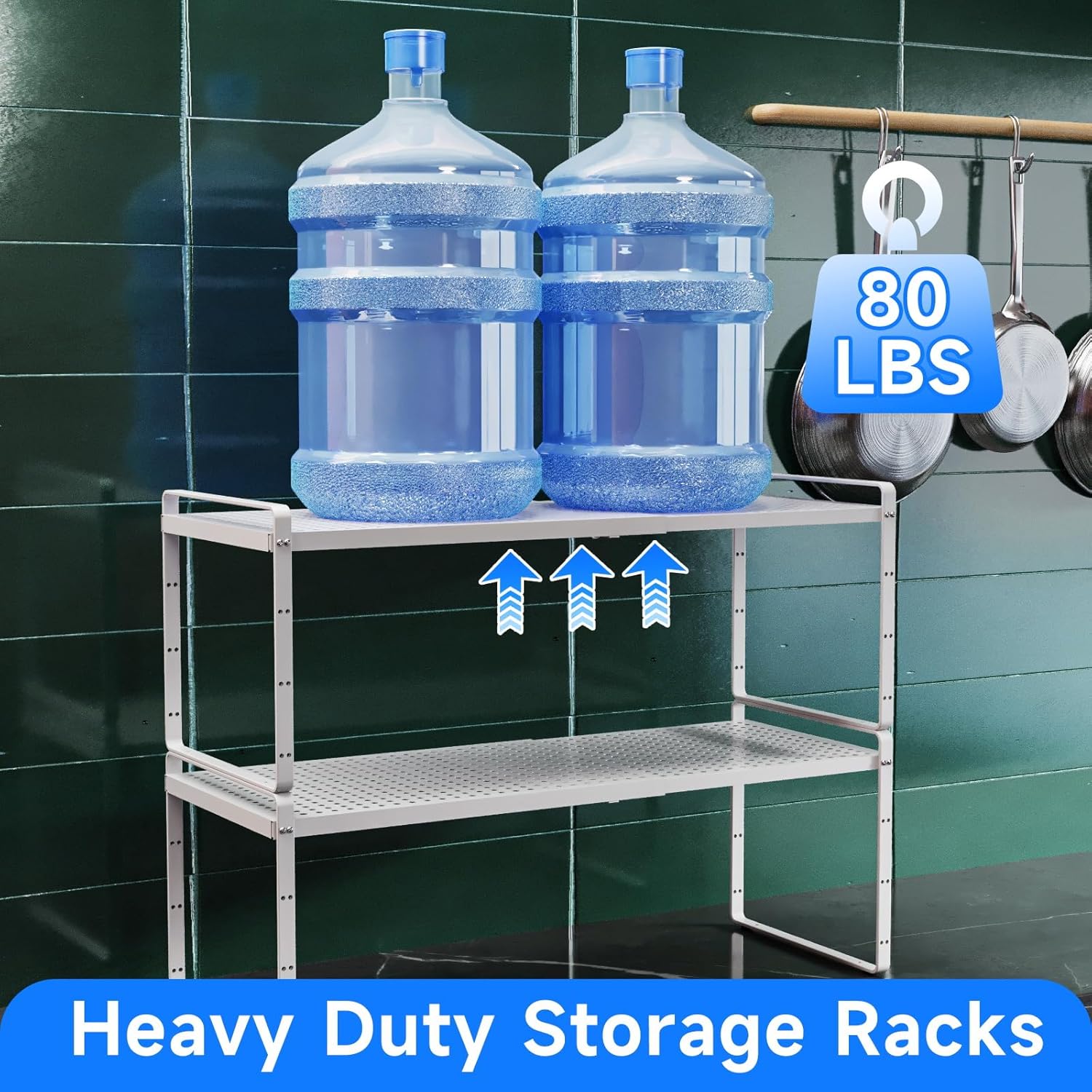 - ăHeavy-Duty Capacityă This cabinet shelf organizer is built to last, with a durable and sturdy construction that can support up to 80 lbs of weight, making it perfect for storing even your heaviest kitchen items