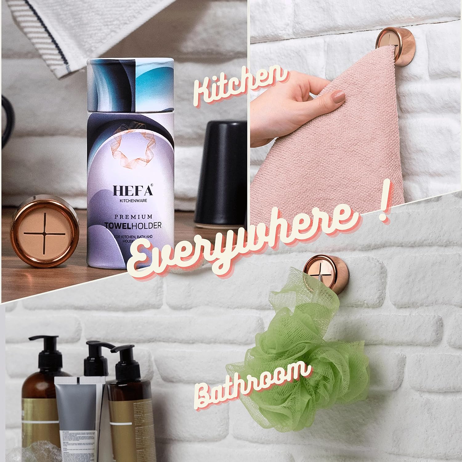 HEFA Towel Holder, Towel Hooks, Dish Towel Holder, Kitchen Organization, Bathroom Accesories, Kitchen Towel Hook, Kitchen Towel Holder, Hand Towel Holder, Kitchen Gadgets 4 Pack, Rose Gold