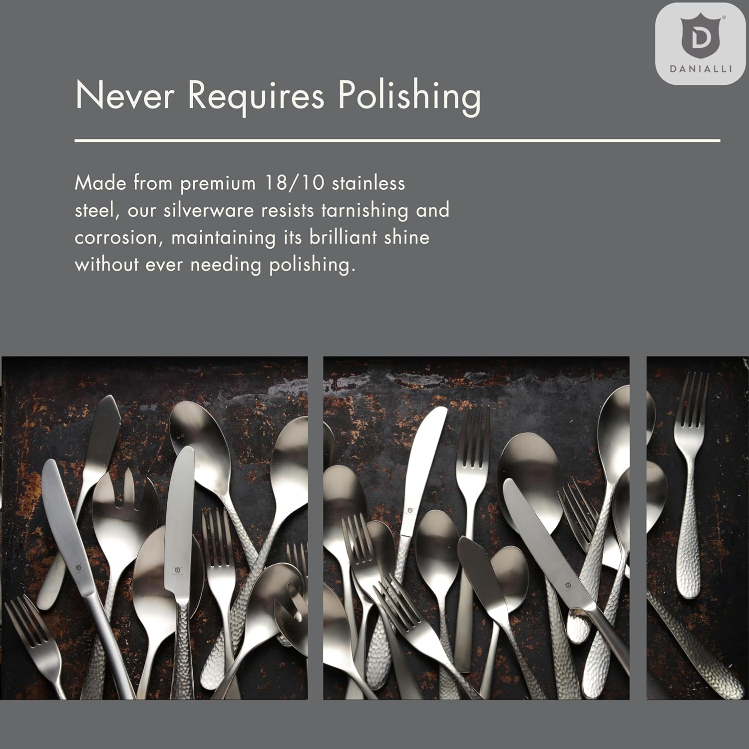 - The Heaviest in DANIALLI’s Collection – Crafted from solid 18/10 stainless steel, each piece offers a hefty, well-balanced grip you’ll notice the moment you pick it up.
