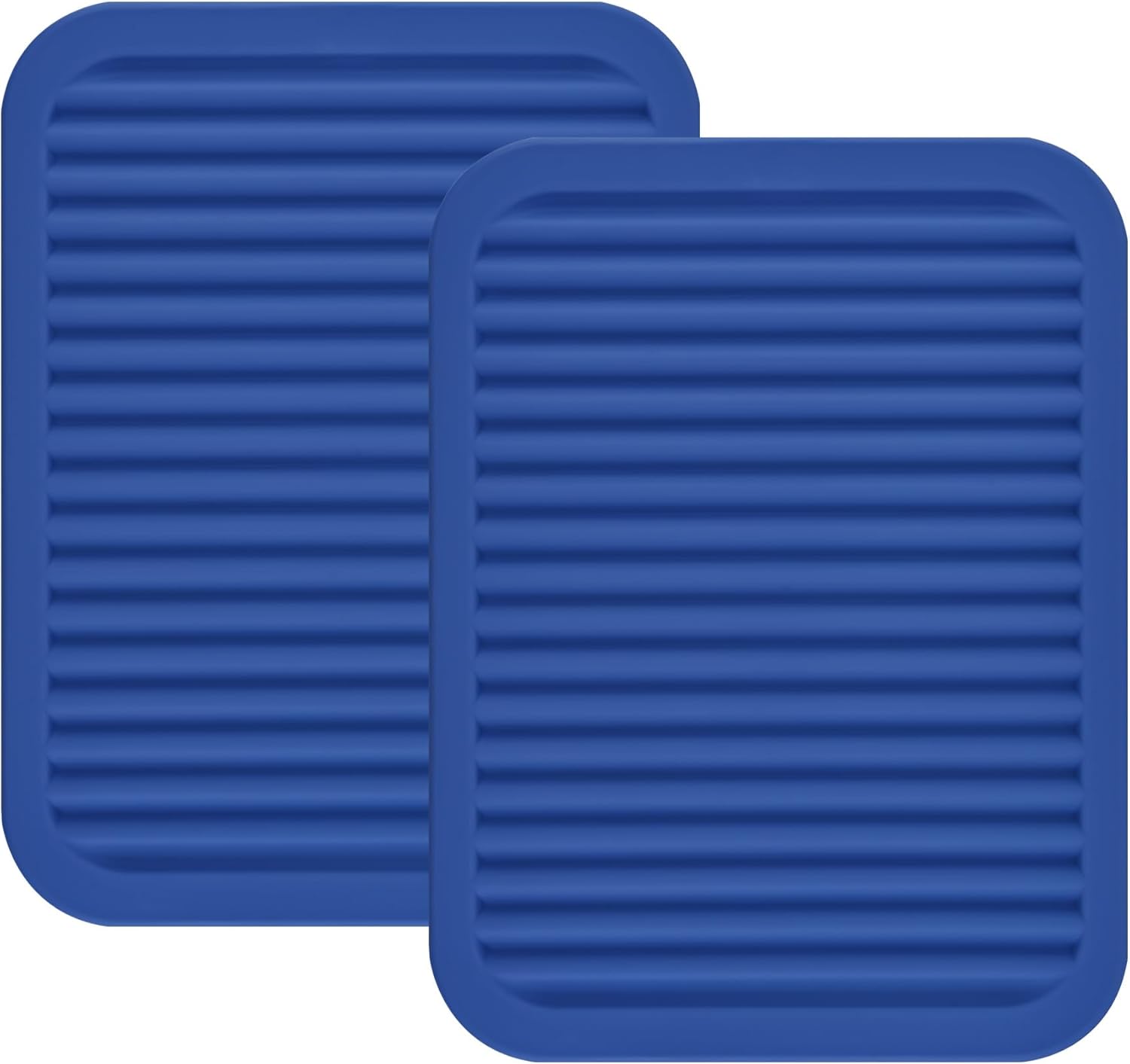 Silicone Trivets for Hot Pots&Pans-Trivet Mat-Hot Pads for Kitchen-Versatile Trivets for Hot Dishes-Heat Resistant Mats for Counter&Table, Pot Holders Drying Mat (9x12) Pack 2 Navy