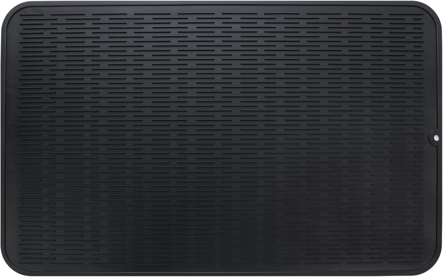 Silicone Dish Drying Mat for Multiple Usage,Easy clean,Eco-friendly,Heat-resistant Silicone Mat for Kitchen Counter or Sink,Refrigerator or Drawer Liner Black 3XL 28 inches x 18 inches