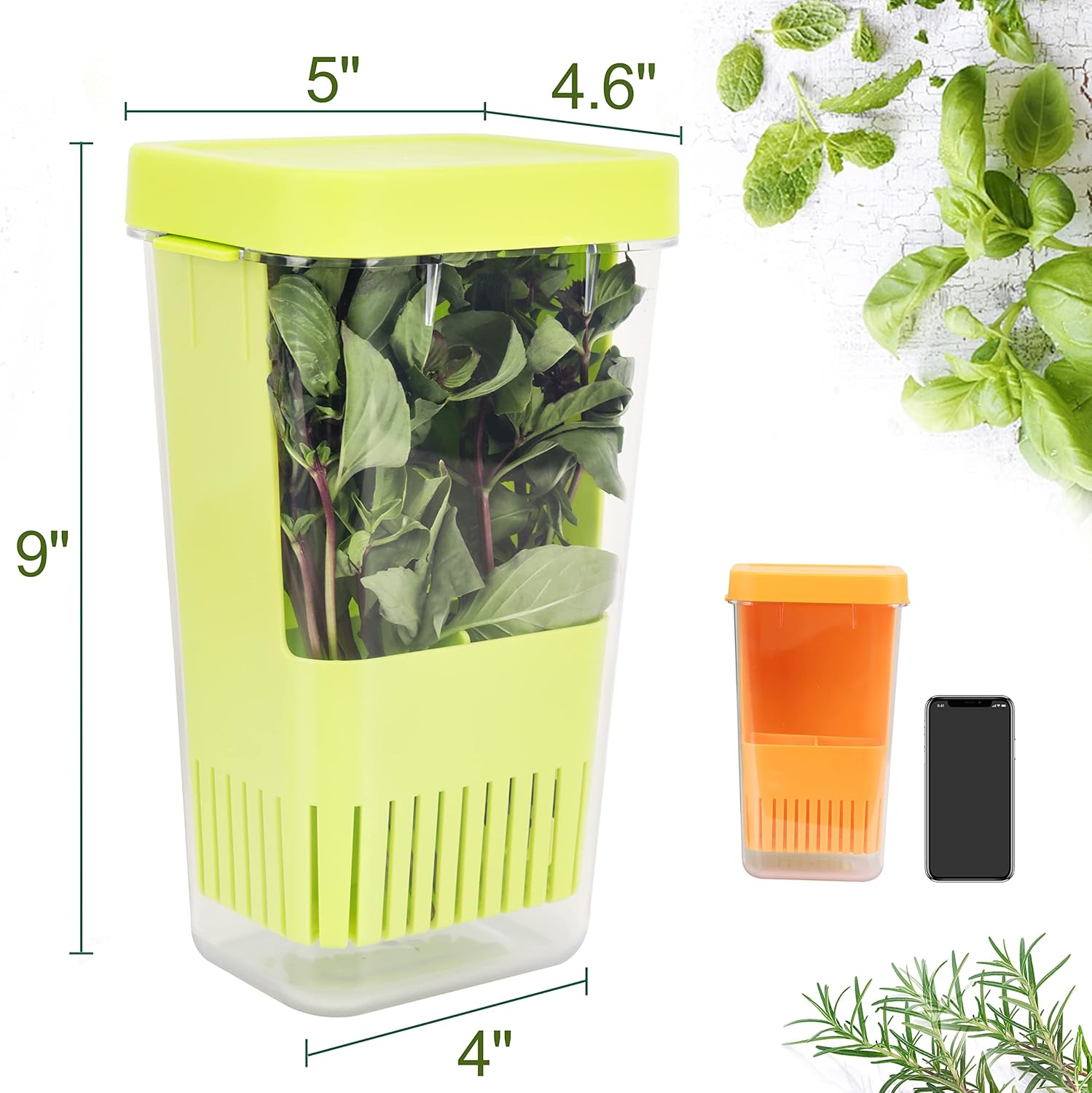 Fresh Herb Keeper for Refrigerator, Clear BPA-Free Herb Saver, Storage Container for Cilantro, Parsley, Thyme, Mint & Asparagus, Preserver Keeps Fresh Herbs for 3 Times Longer, Green & Orange