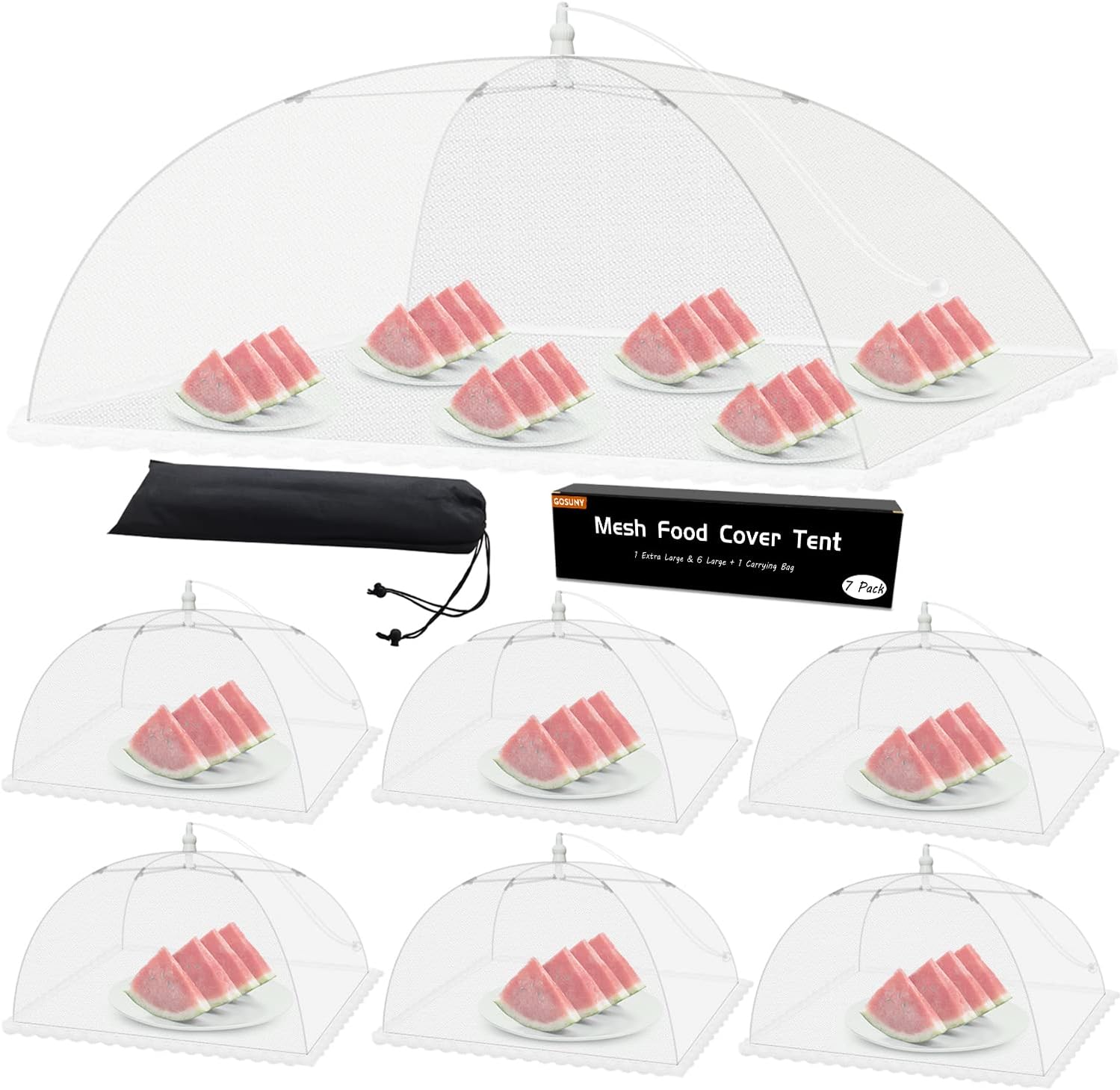 - BUILT TO LAST - Gosuny is committed to producing high quality and excellent kitchen home products, we will never ignore the details. The food cover frame is made of thickened US standard stainless steel, which is durable and not easily deformed, not easy to be blown away. High density nylon mesh has strong tear resistance. Gosuny is a brand you can trust.