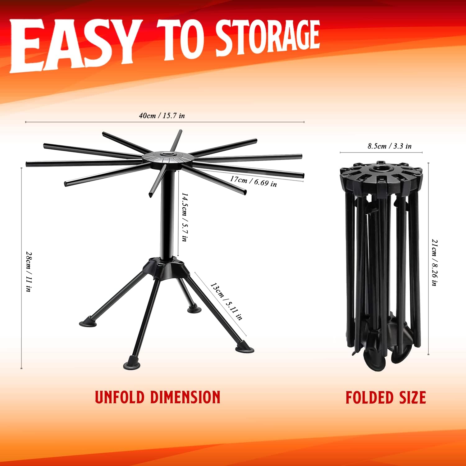 - COMPACT DESIGN: The spaghetti dryer stand is ultra-compact and is collapsible so you can easily store it when youβre not drying pasta. The pasta dry holder is incredibly easy to assemble and disassemble, and its compact size makes it ideal for your kitchen countertop or your kitchen table.