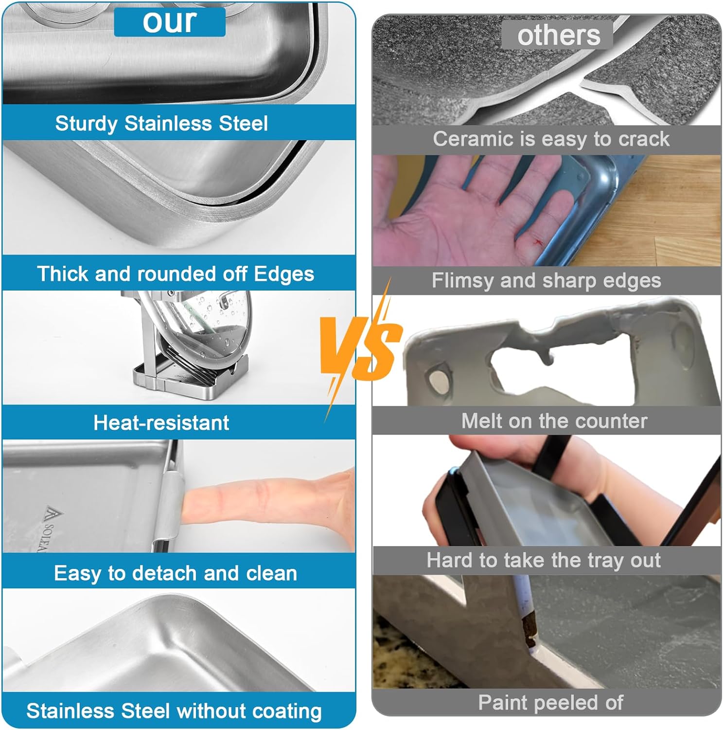 SOLEADER Vertical Spoon Rest and Lid Stand for Stove Top kitchen Utensils Pot Lid Holder and Organizer for Kitchen Counter Foodgrade Stainless Steel with Drip Tray and Handle