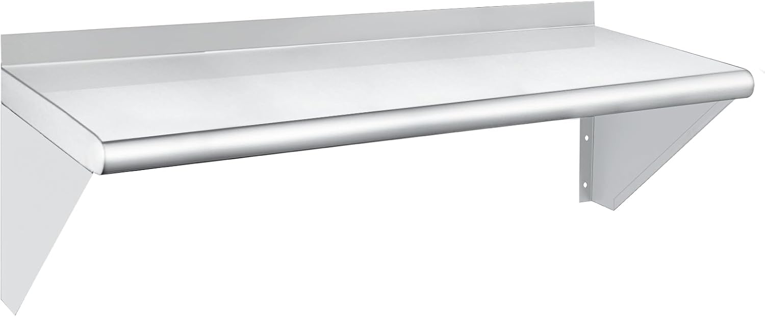 - ăWIDE APPLICATIONă- Our stainless steel shelf wall mounted offers a versatile storage solution for various applications. Whether you need additional storage space in your kitchen, pantry, garage, workshop, laundry room, or even commercial settings such as restaurants, cafes, or offices, this shelf can accommodate your storage needs. Save your space and make effective use of wall space.