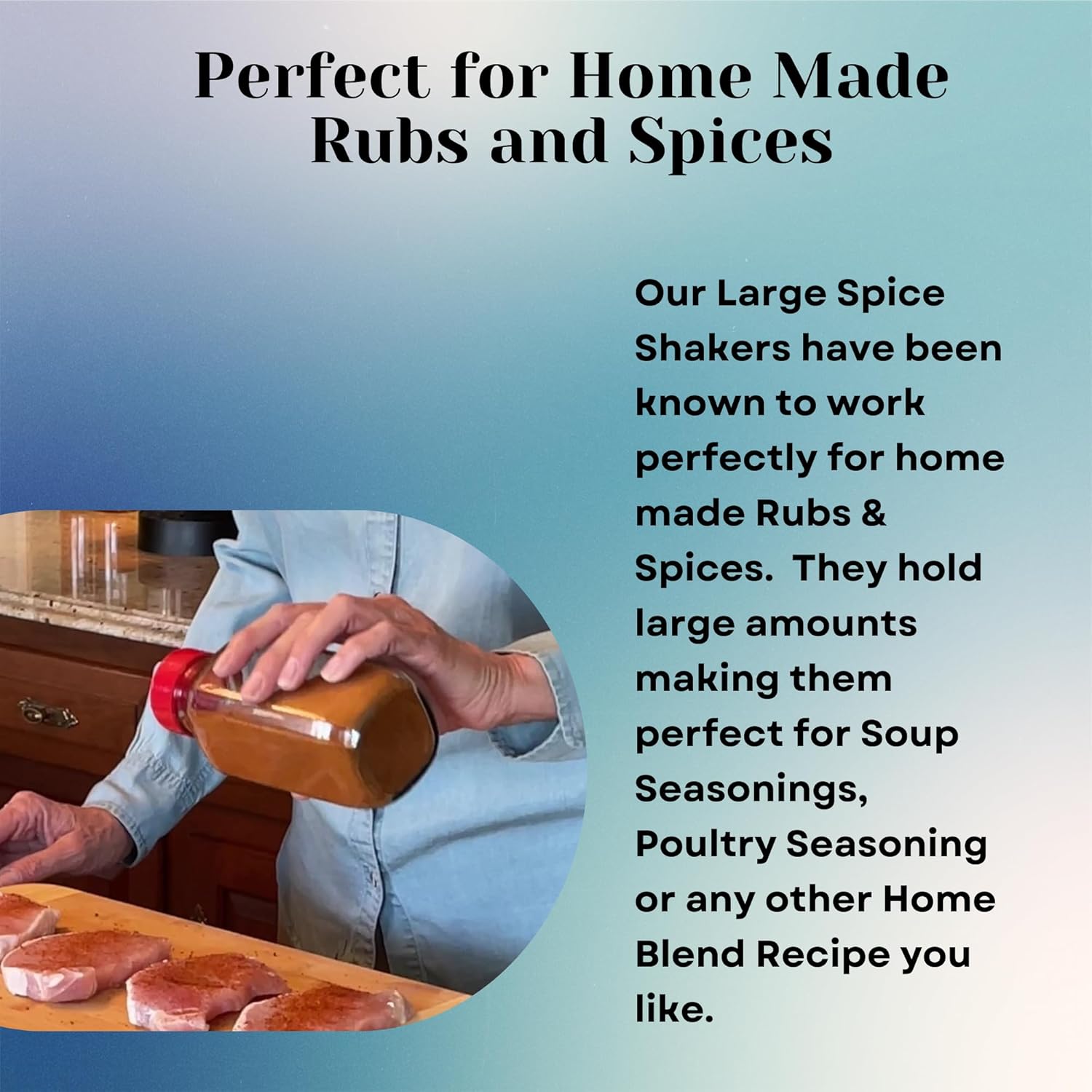 - Convenient Spice Shakers: Our seasoning jars for kitchen organization and storage boast a unique thumb design that makes opening and holding them simple. Spice jars and shaker lids are both dishwasher safe.