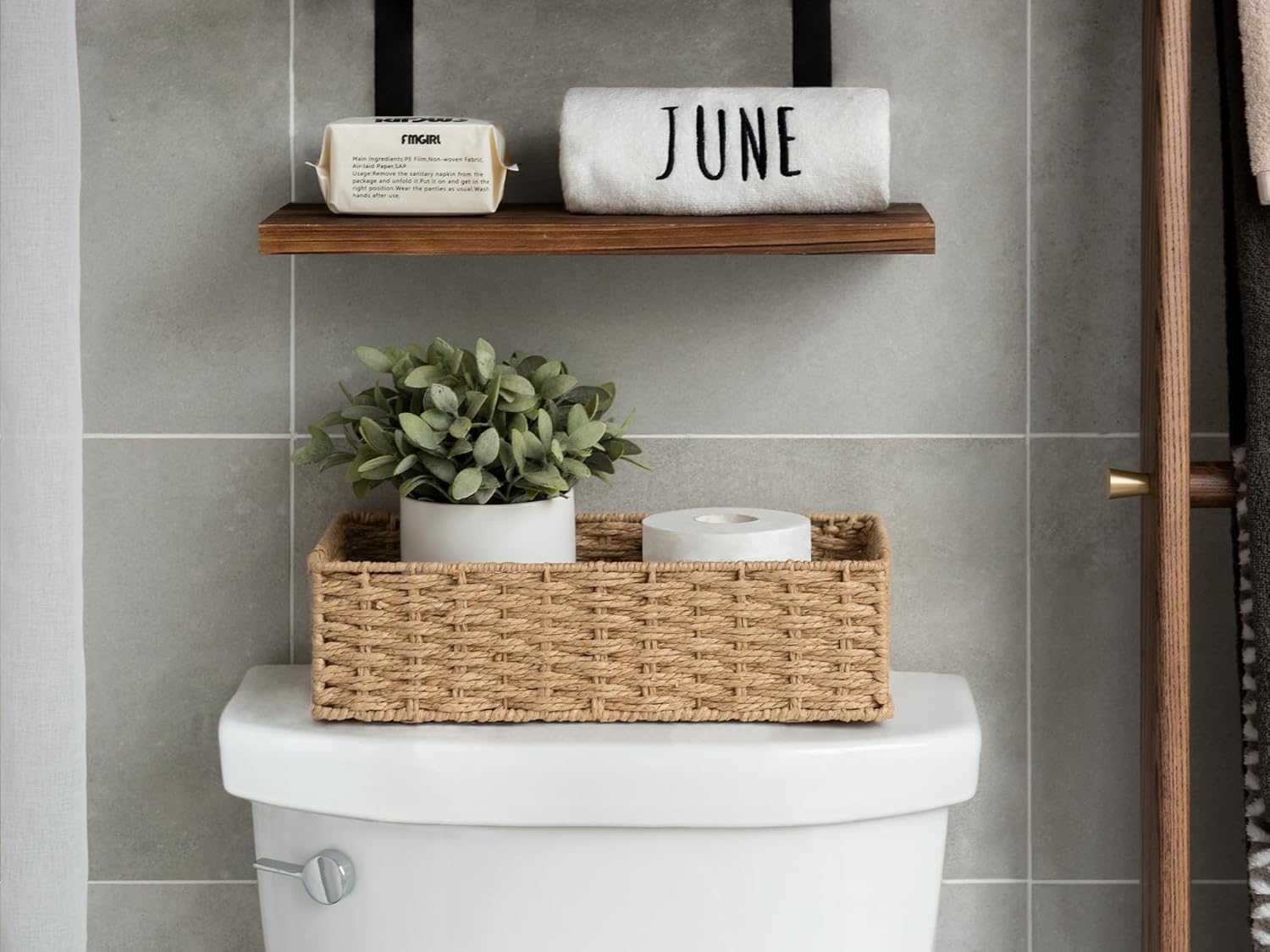 - Handwoven toilet tank basket features 2 thickened built-in handles for secure and easy carry.