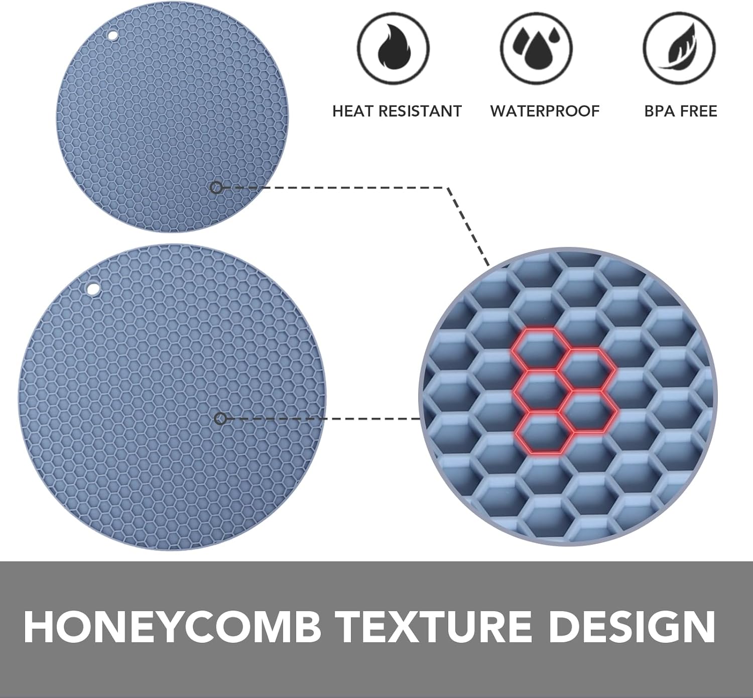 - FLEXIBLE & DURABLE TRIVETS - Our silicone trivet mats for kitchen counter are thicker than traditional sets to provide long-lasting durability and better protection for your countertops while maintaining their flexibility. The honeycomb pattern makes them more heat-resistant.