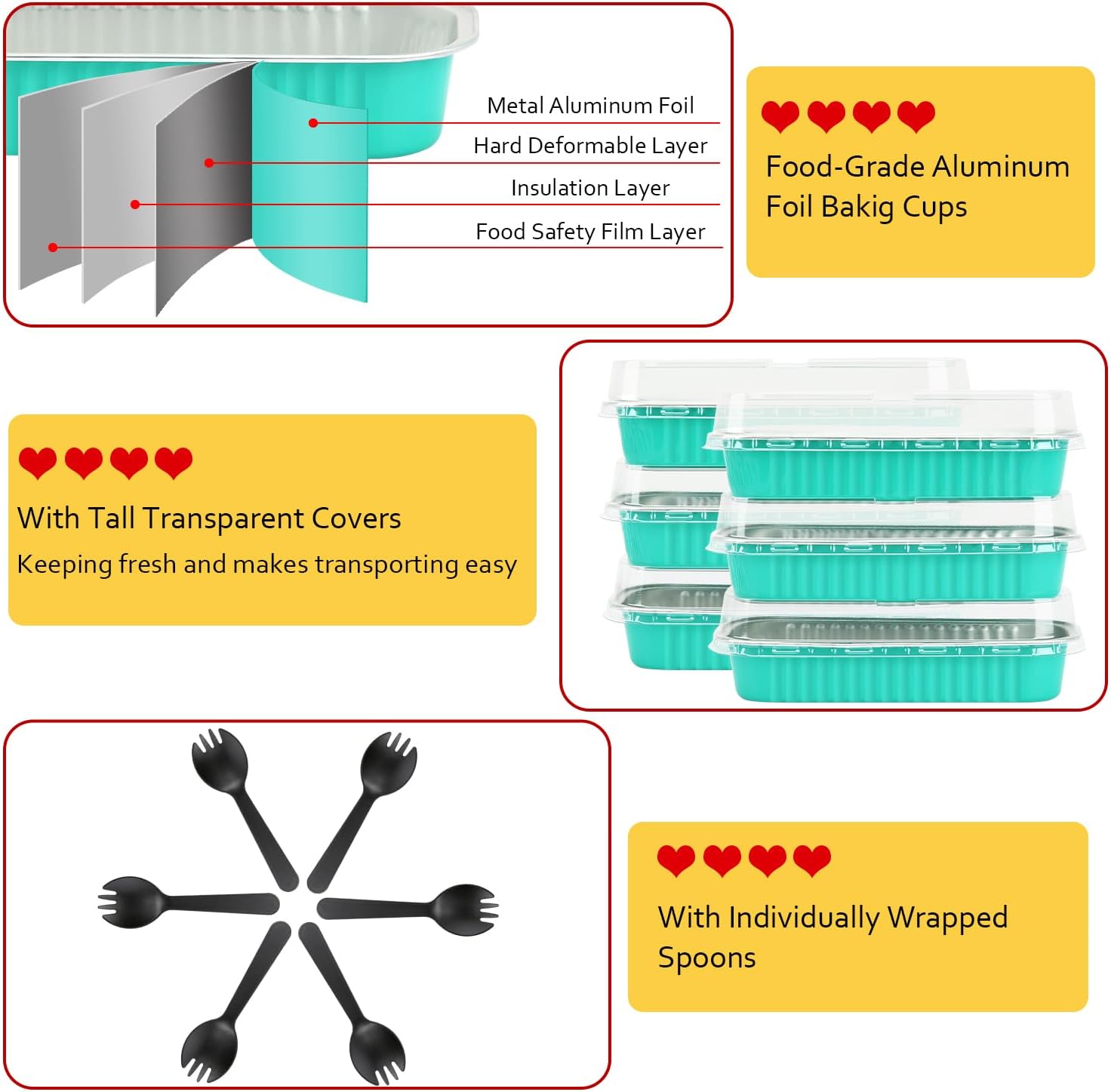 - ăEasy to Useă - This disposable baking pans is not easy to deform in the baking process,not only can be used as a small baking pan.Matching the top cover,but also a exquisite package container.Without demudding and waste time washing the baking tray, you can enjoy baking more.Plastic Lid snaps on tight, keeping your goodies fresh in the refrigerator and makes transporting easy.