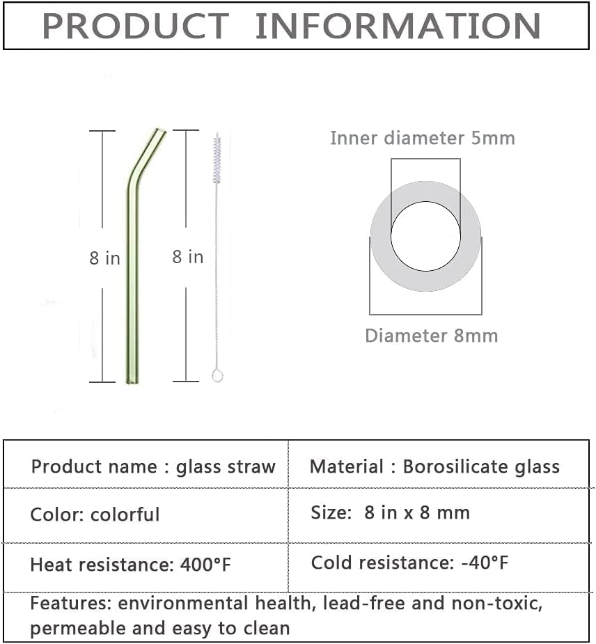 - Environmentally friendly and healthy: Compared with disposable plastic straws, colored glass straws can be reused, more environmentally friendly, friendly to the environment, dear for the sake of your family's health, quickly add the healthy glass straws to your shopping cart!