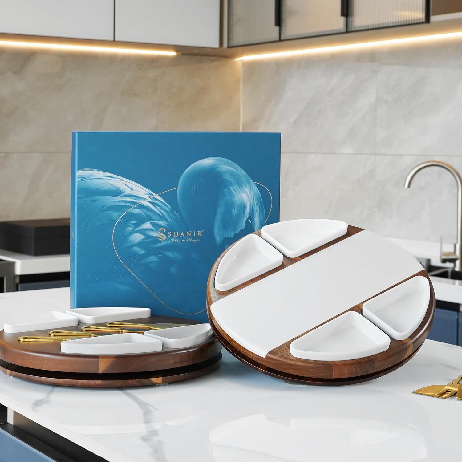 - Elevate Your Entertaining Experience: This Shanik Lazy Susan charcuterie board, crafted from premium Acacia wood, acts as the perfect centerpiece for any gathering, providing an elegant and functional platform to serve an array of cheeses, meats, and more. Immerse friends and family in a world of flavors with easy access and effortless spin, making hosting easy and luxurious.
