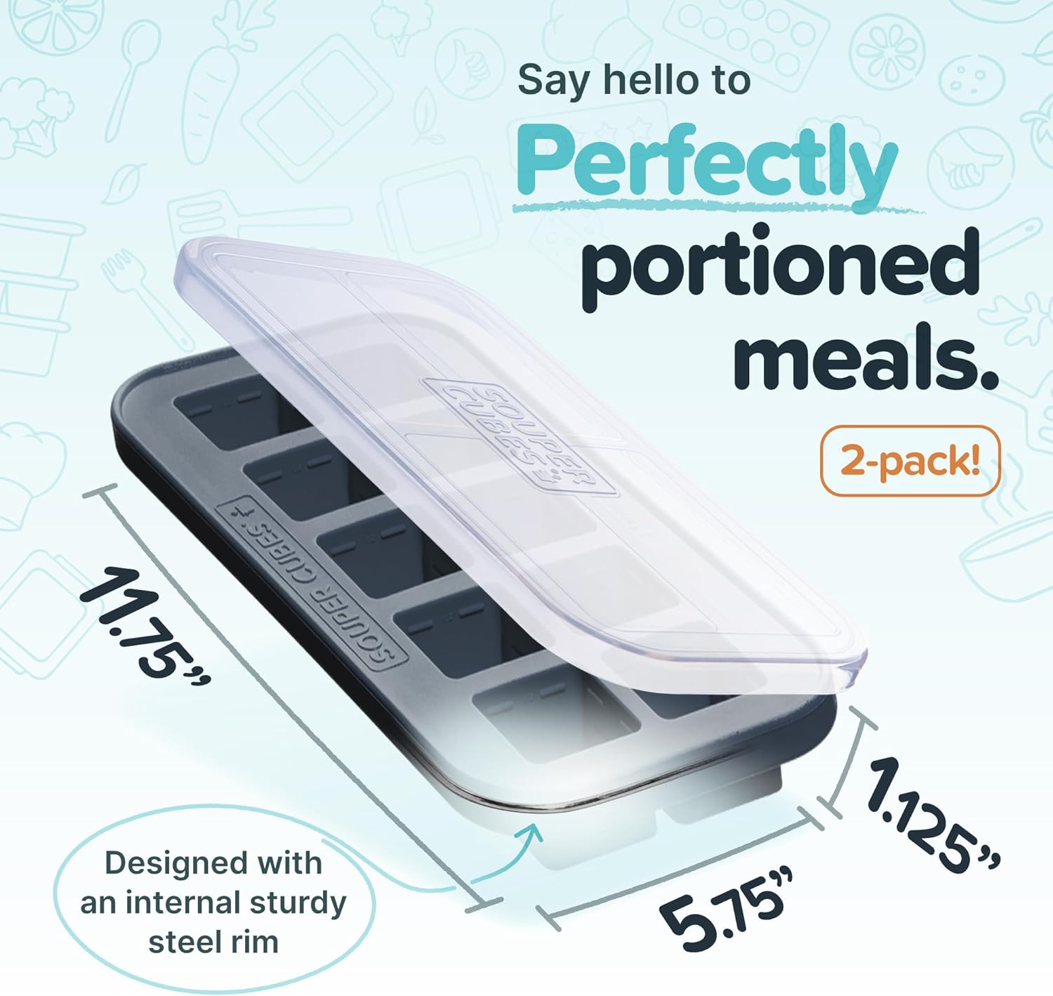 - MEAL PREP: Spend less time thinking about what you're going to eat and more time enjoying it. Our silicone freezer trays with lids are designed to make meal prep a breeze. They are made from 100% pure platinum food-grade silicone with a steel-reinforced top and a convenient lid.