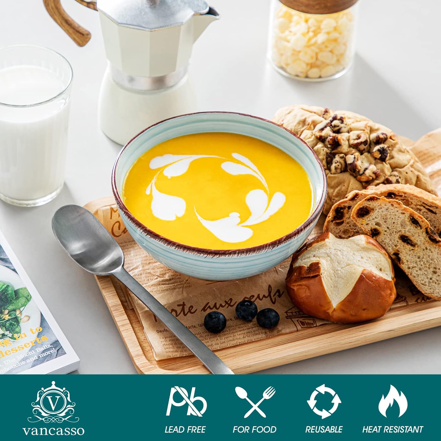 vancasso Bonita 27 Oz Cereal Bowls Set of 6, Blue Ceramic Bowls for Kitchen, 6 Inch Soup Bowls, Dishwasher & Microwave Safe