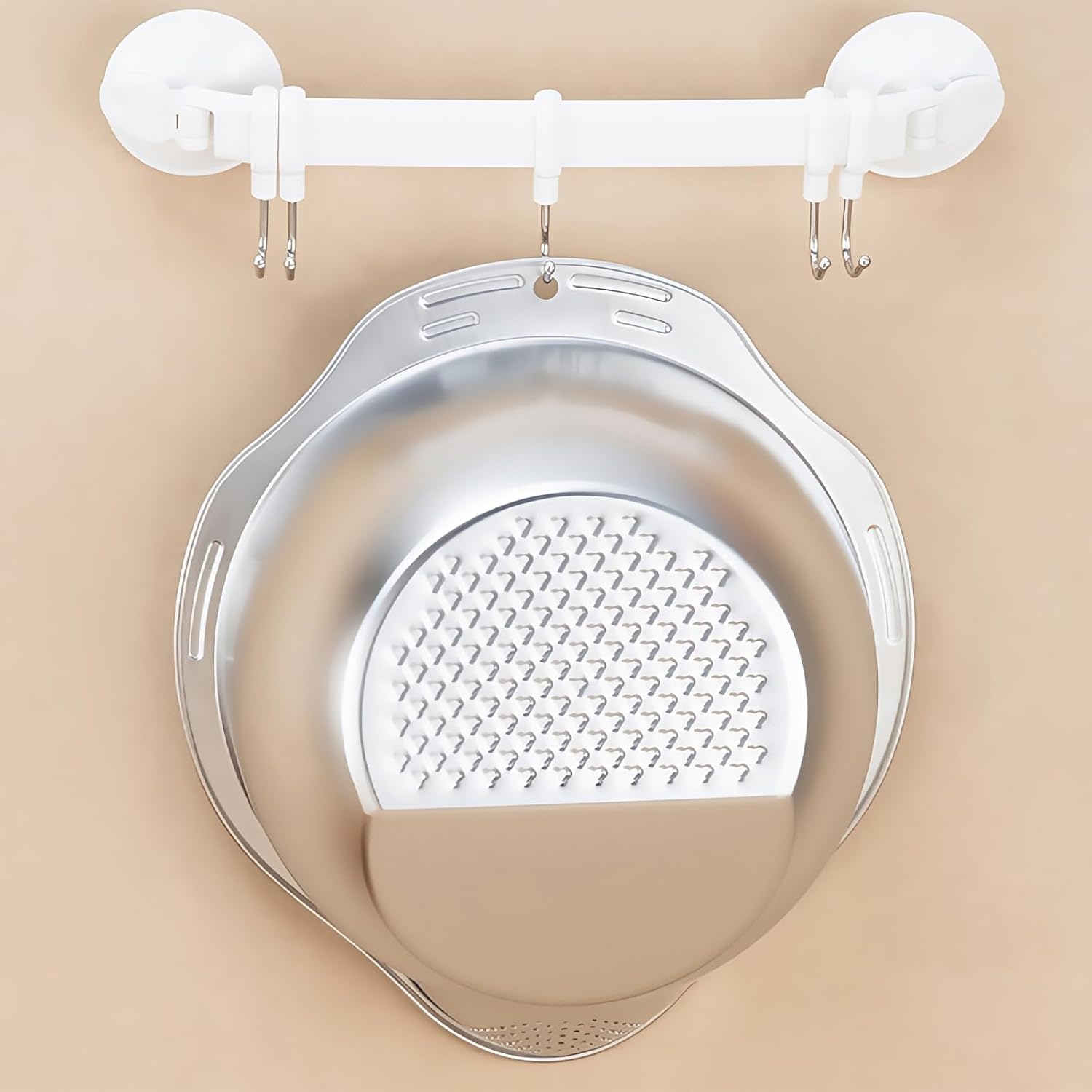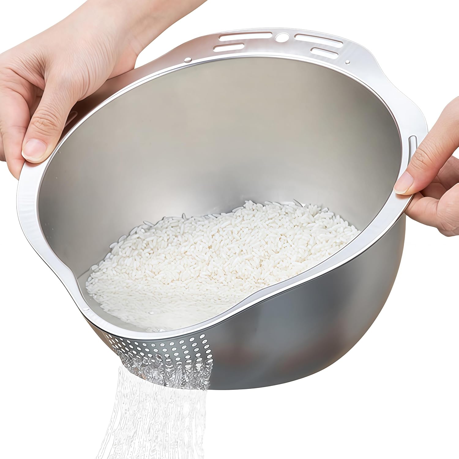 Rice Washer Strainer Bowl - 4-in-1 Washing Bowl for Quinoa, Stainless Steel Side Drainers Colander for Cleaning and Rinsing Fruits, Vegetables, and Beans - Versatile Kitchen Tool