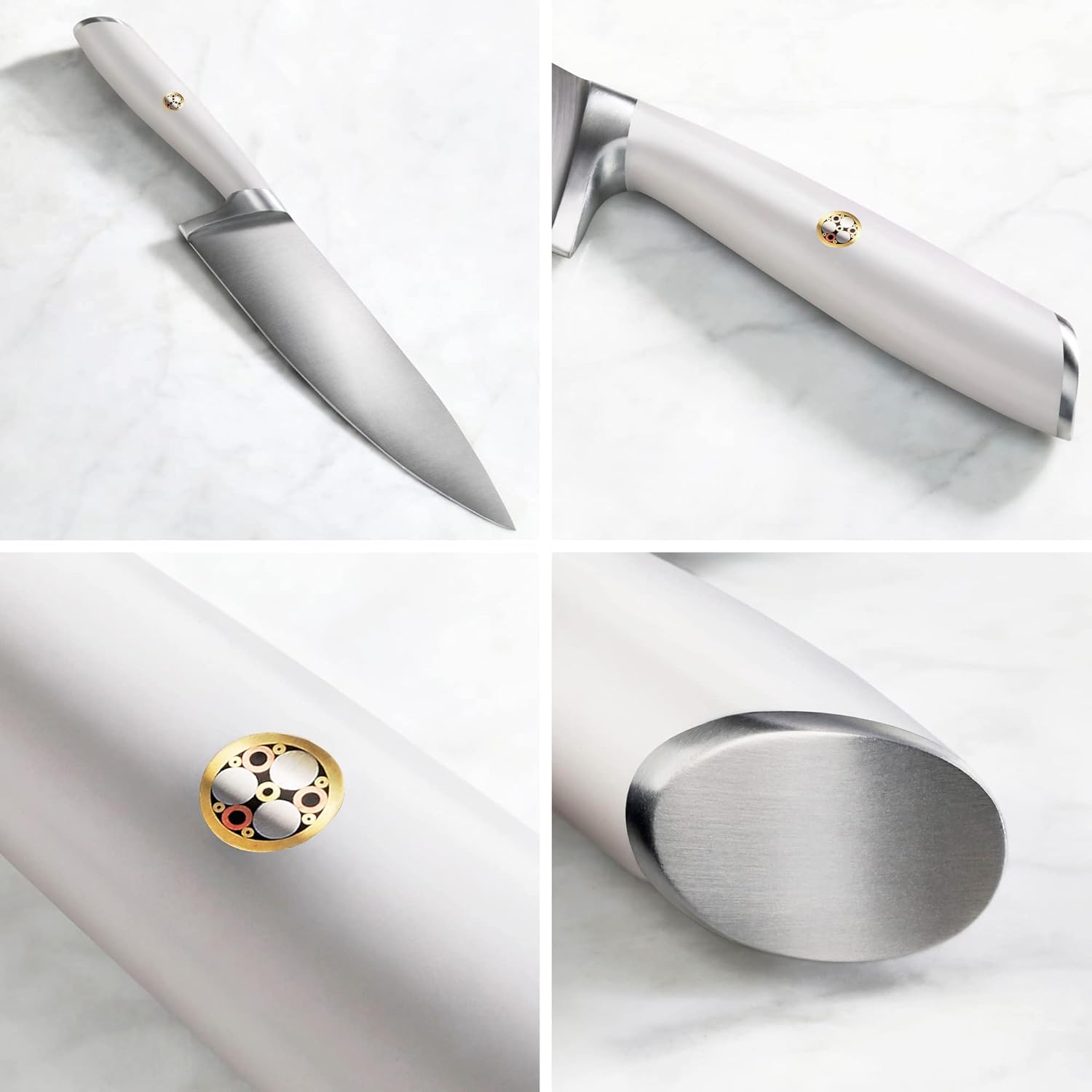 - Patented design knives focus on an ergonomic handle that provides an easy and comfortable grip. Well balanced and comfortable Crème color handle works with the signature single mosaic rivet tastefully.