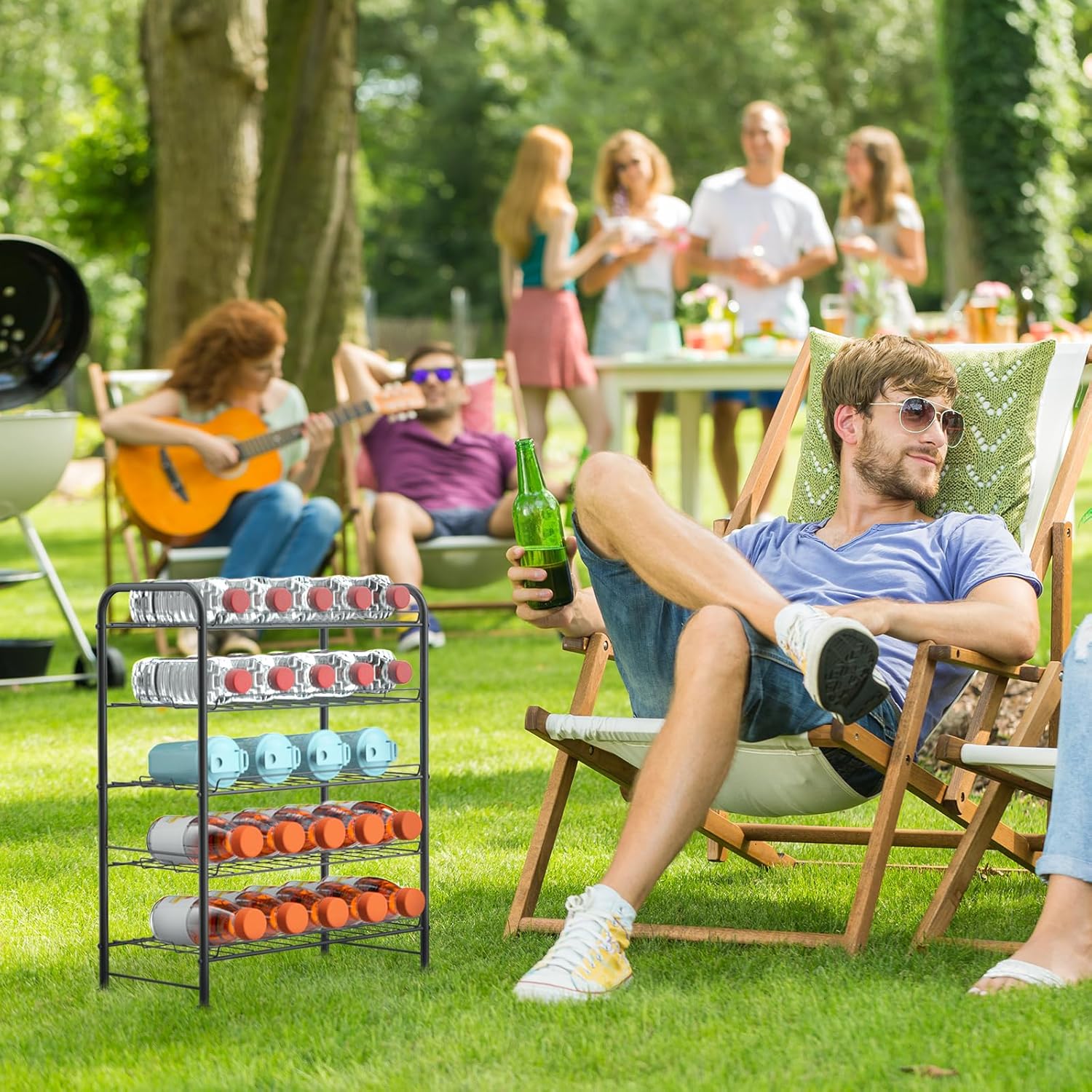 - ✅【Easy Assembly& Non-Slip 】The beverage organizer is a snap and screws assembly design that doesn’t require any tools to install, and just 15 minutes to assemble. The adjustable feet design not only protects your countertop or floor from being scratched but also keeps the bottled water storage rack stable even on uneven floors.