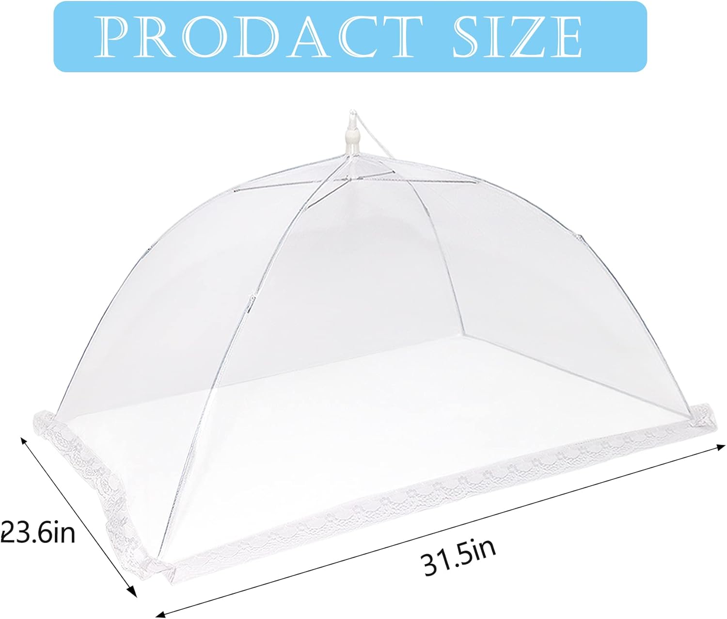 - SUPER SIZE: Big sizes of 40"X24" food nets for outdoors make more use scenarios and can be reused. The bottom of the foldable food cover has a moderate lace edge, which acts as a barrier and is an effective food net. A variety of large sizes make your party food more secure.