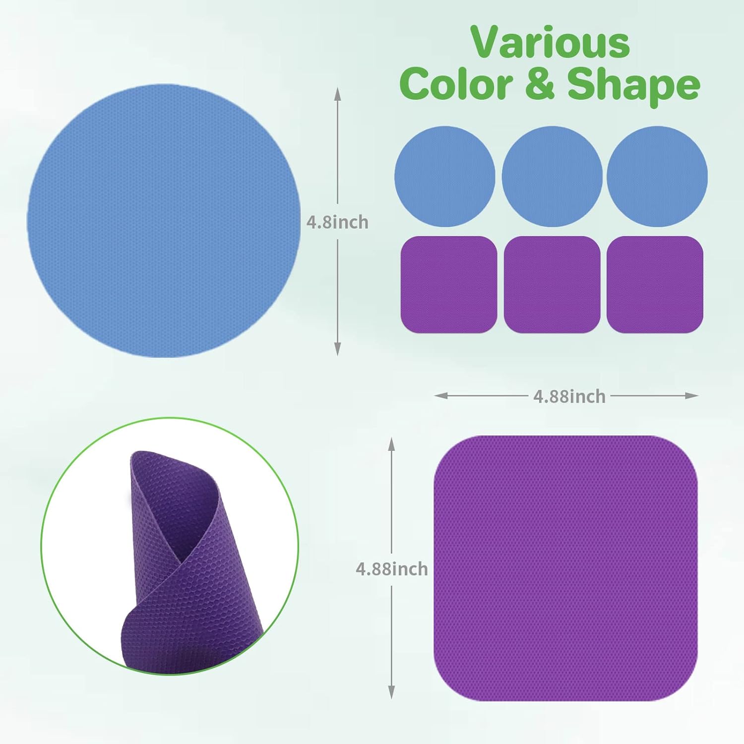 - Package Includes: You will receive 6pcs jar opener gripper pads in 2 shapes(round & square) & 2 colors(light blue & purple). These rubber gripper pads are soft & thin, easy to open the lids without extra jar opener.