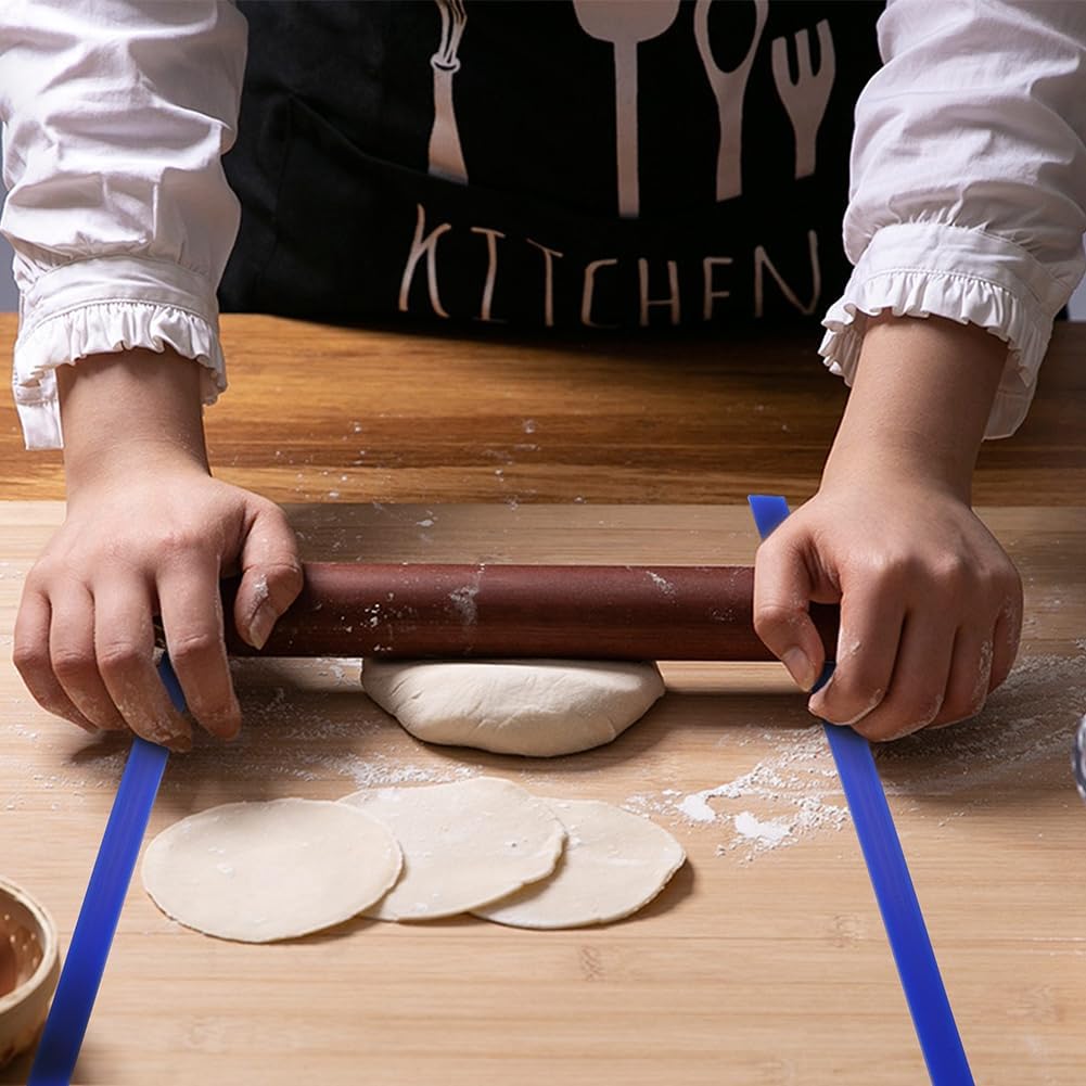- Non Stick: The non stick and flexible design makes our thickness guides kitchen and dough guide sticks easy to use. The bonding technology can keep the strip intact and measuring dough strips for noodles provides great pressure, measuring dough strips for fondant and silicone rolling pin guides will stay in place on pastry mat