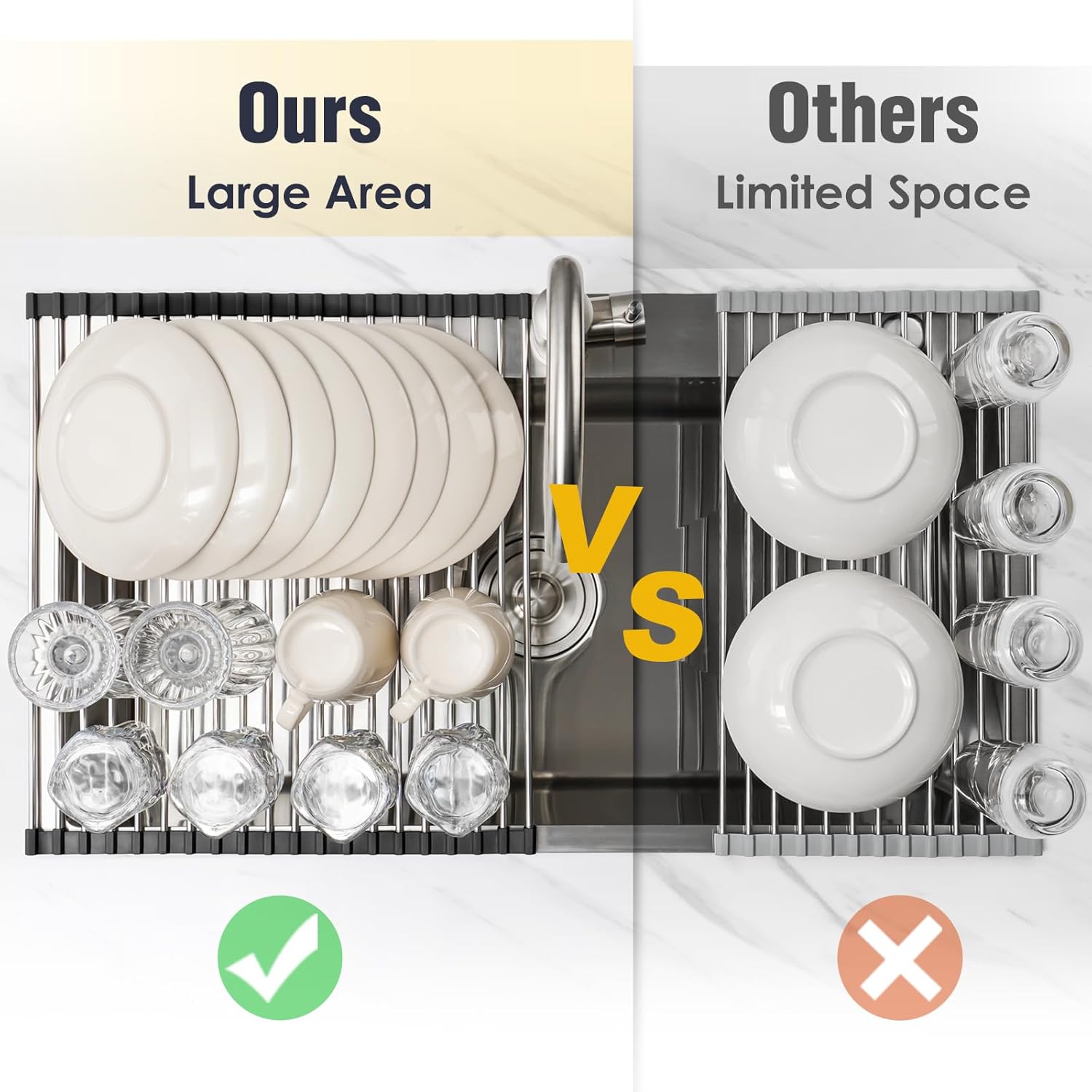 Tomorotec 21" x 15.5" Roll Up Dish Drying Rack Over Sink Drying Rack Sink Cover Kitchen Sink Accessories Gadget Multipurpose Organizer Foldable Stainless Steel Drainer