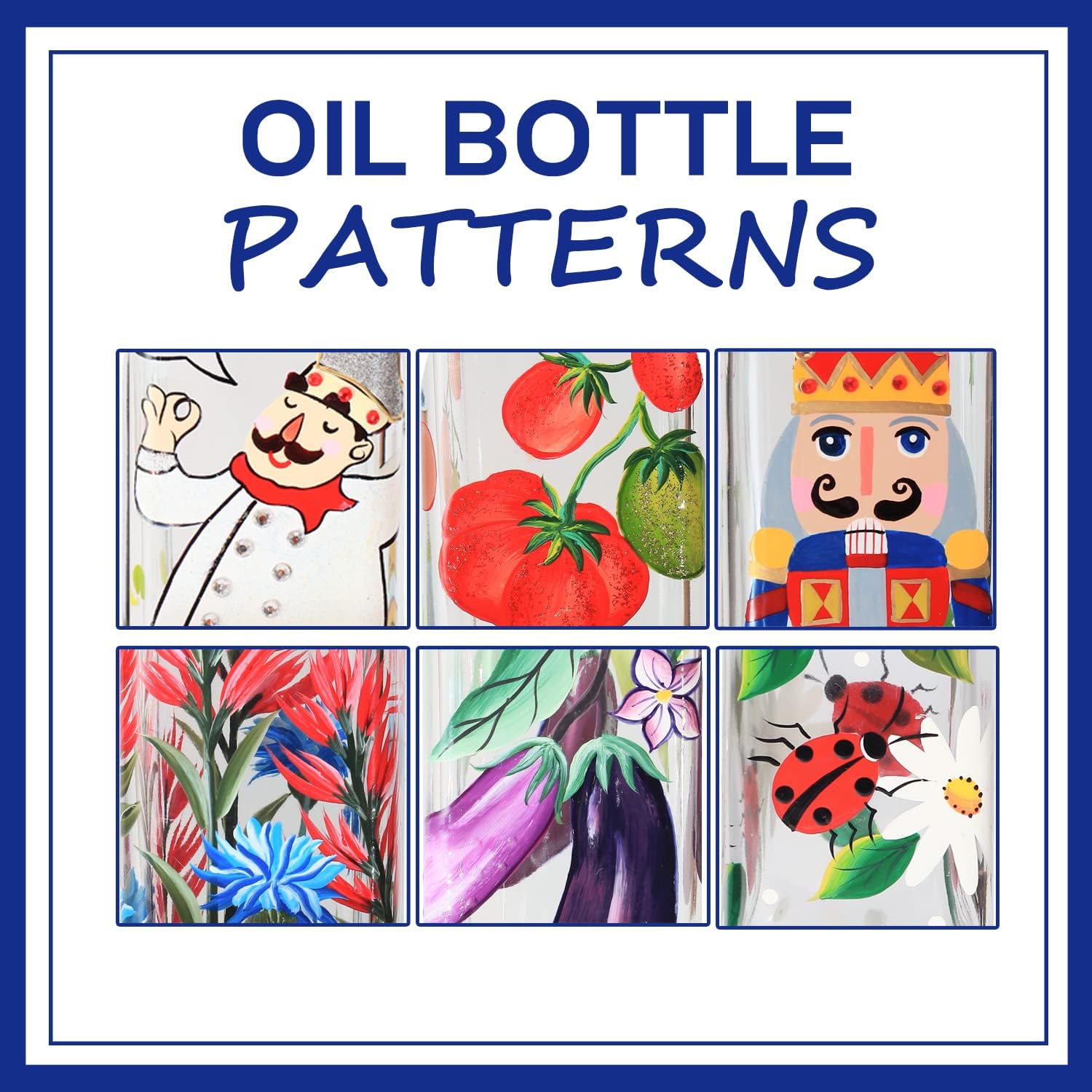 17oz Hand Painted Glass Olive Oil Bottle - 500ml Green Oil & Vinegar Cruet with Pourers and Funnel - Olive Oil Carafe Decanter for Kitchen (The Nutcracker)