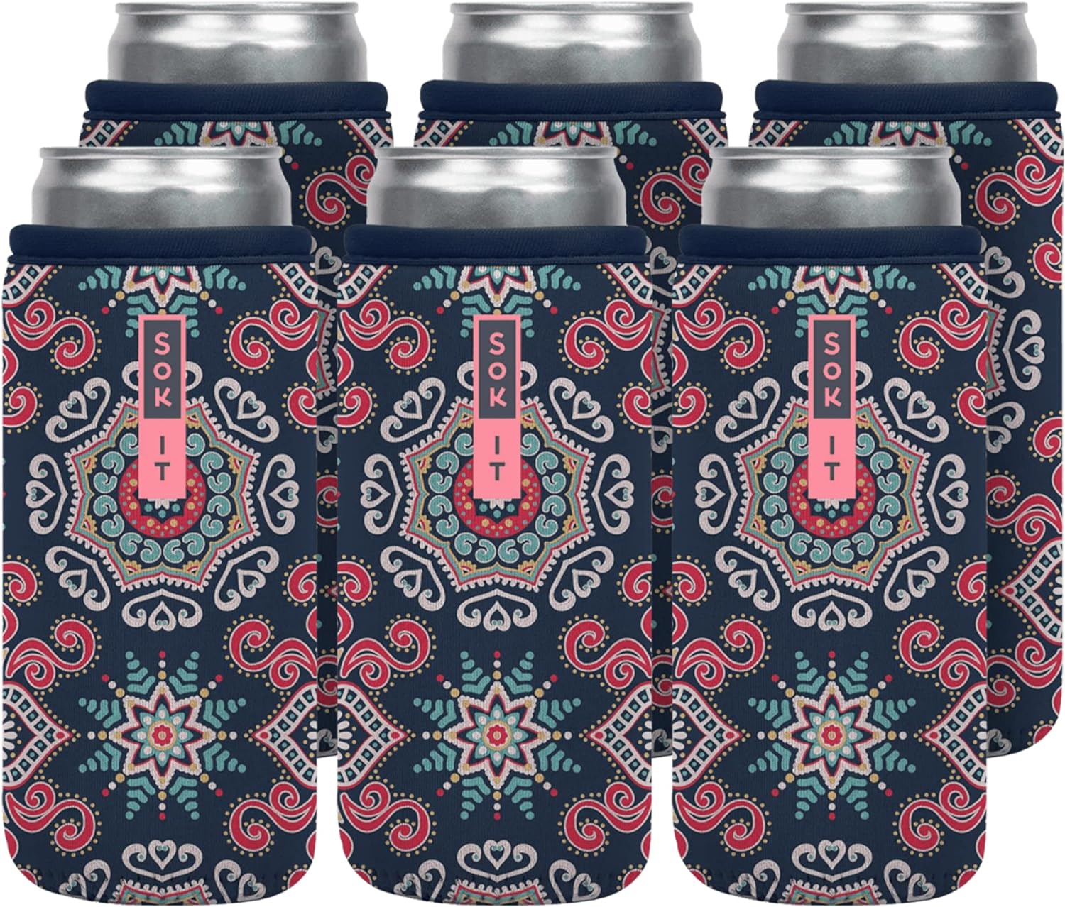 Sok It CanSok 6 Pack Sleeve for Beer & Soda Insulated Neoprene Cover (Floral Burst, 12oz Slim Can Sleeve - 6 Pack)