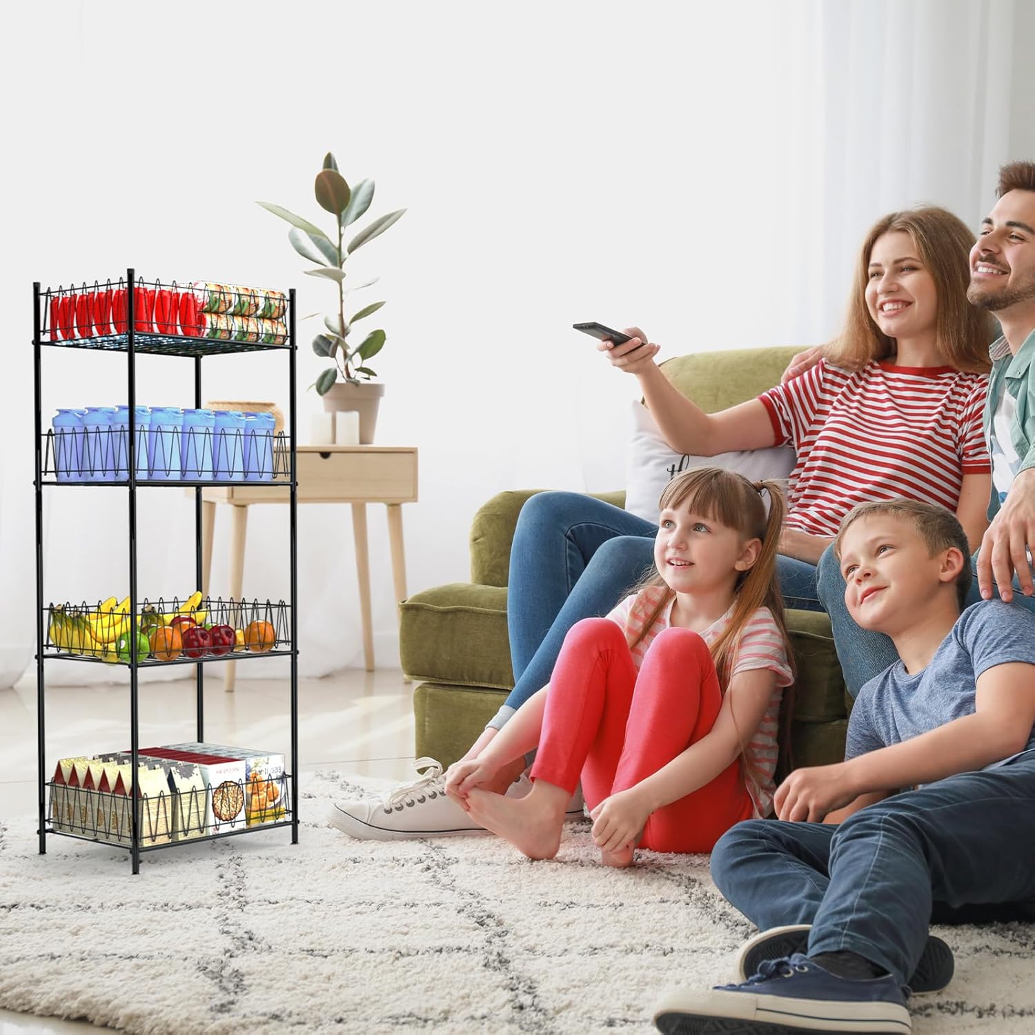 ETELI Water Bottle Organizer 4 Tier FreeStanding Water Bottle Holder Storage Rack Floor Metal Drink Soda Can Organizer for Pantry Kitchen Food Storage, Black