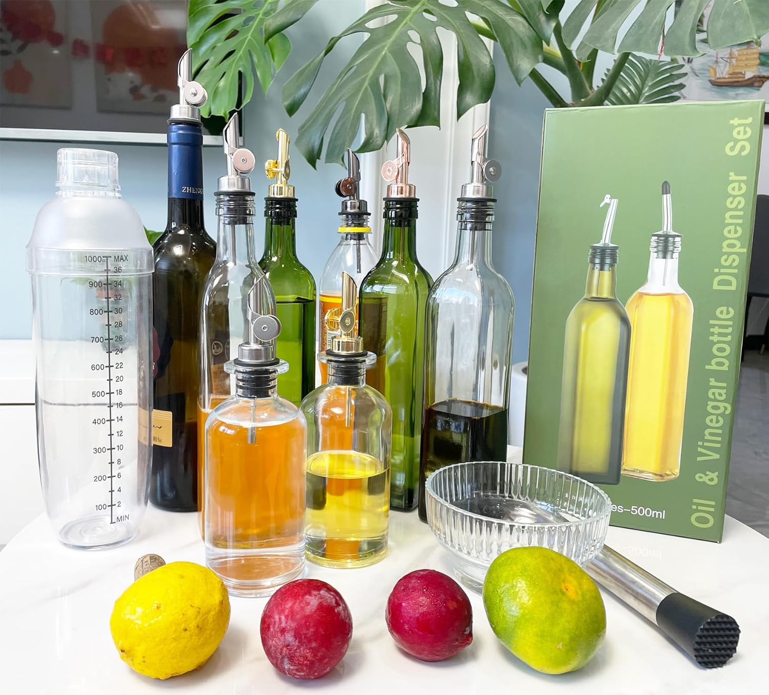 - Speed Pourers and Consistent Free Flow Pourers: Our liquor bottle pourers tubing has been engineered widened to deliver a fast, consistent flow of oil or other liquids. You can easily control pouring with just one hand, less spillage and mess. the oil dispenser spout ideal for salads, grilled chicken breast, pizza toppings or mixing cocktails,allowing you to enjoy the thrill of easy cooking and bartending.