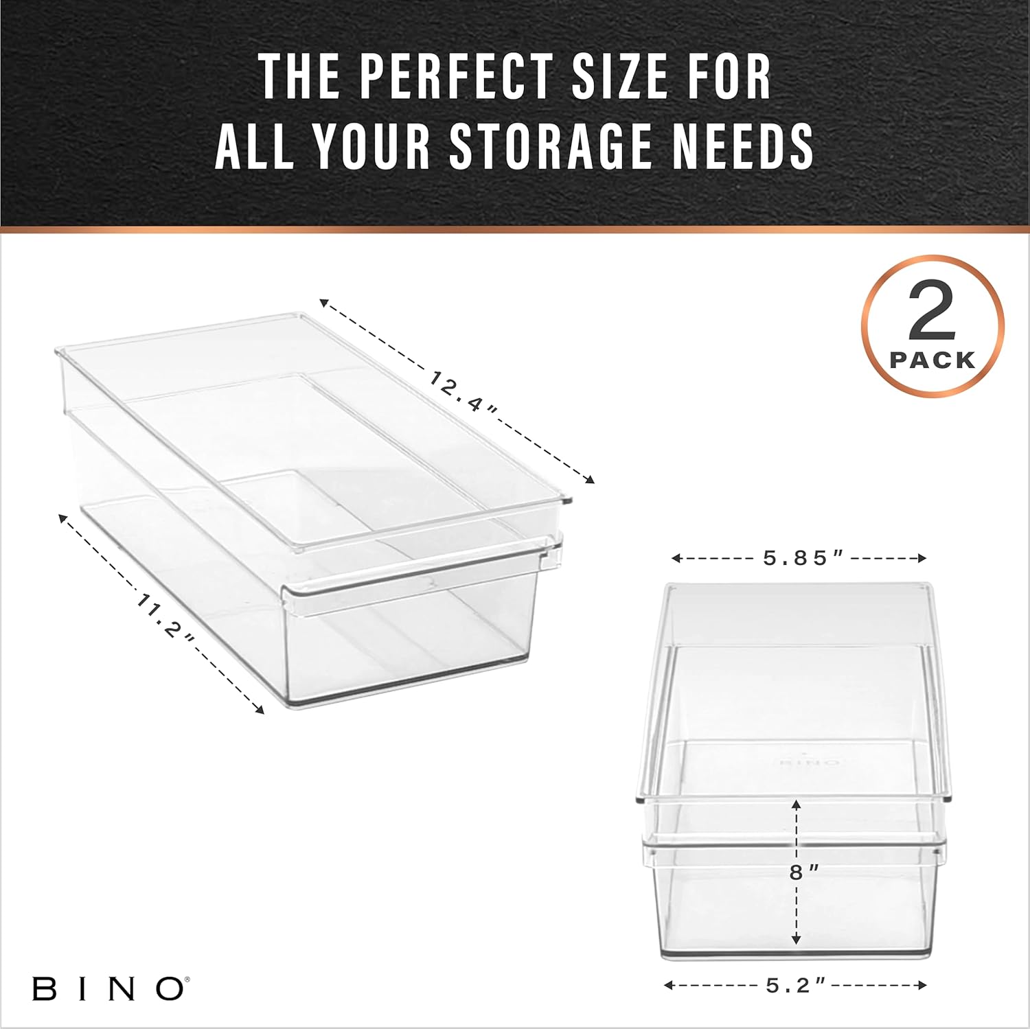 BINO | Plastic Storage Bins, Medium - Shallow | THE HANDLER COLLECTION | Multipurpose Organizer Bins | Kitchen Pantry Organizers and Storage | Clear Containers for Organizing Home | Freezer Organizer