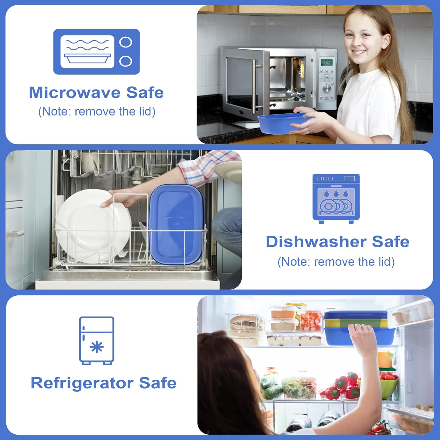 - Food-Grade Materials for Healthy Eating: Our lunch box containers is made of high-quality food-grade PP+PE materials, ensuring it is free from BPA. It is safe to use in the microwave, refrigerator, and dishwasher (excluding the lid). Choose a healthier option for you and your family with our dedicated design