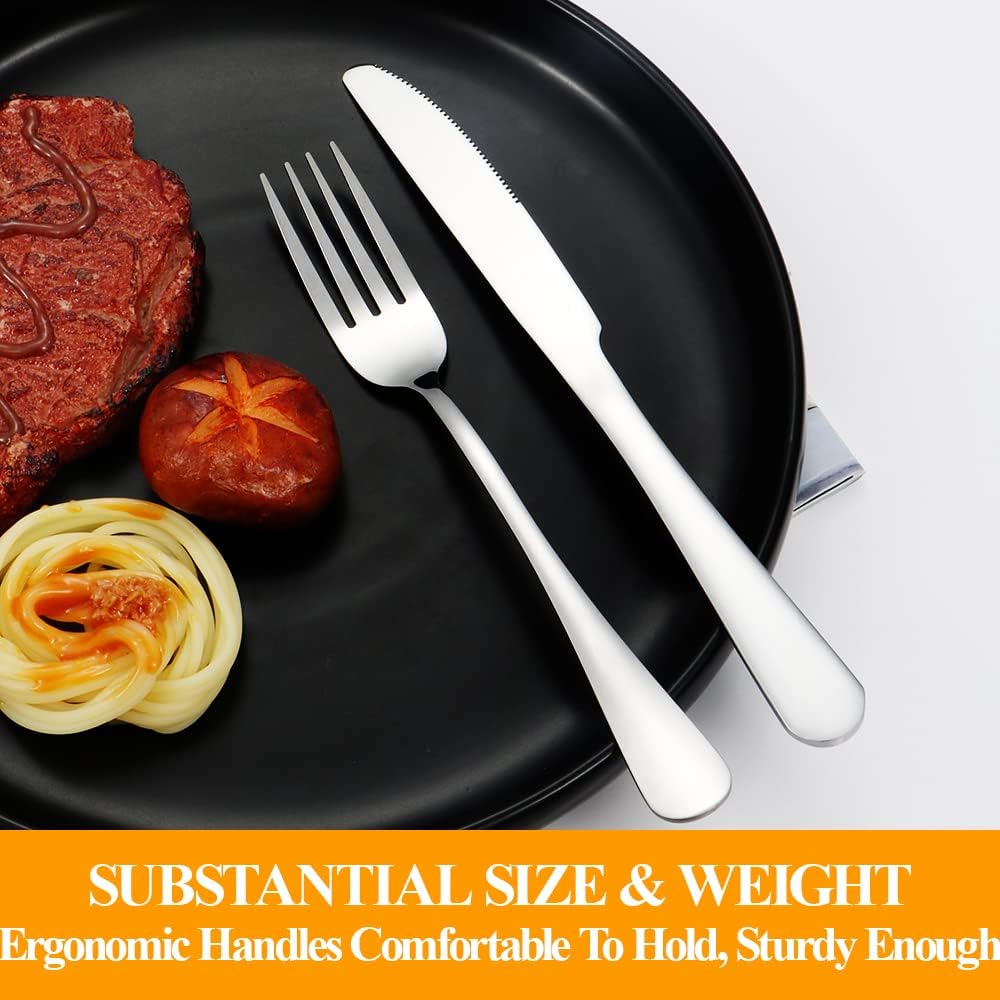 - ā WONDERFUL WORKMANSHIP AND FUNCTIONAL---Mirror polished, highly reflective, minimalist design adds a modern and elegant touch to any table, this set of silverware will greatly improve the presentation of every meal, you will never feel embarrassed feeding friends and family with this quality kitchen forks spoons and knives set.