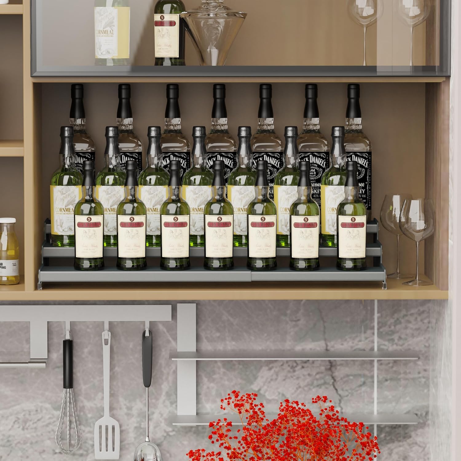 - ā[Expandable Size]The spice rack organizer is retractable and has a width range of12.8'' to 24.01'',you can put anywhere you need.Ideal for storing spice,condiment,pepper,sauces,seasoning,cosmetics,dressing,bottles,jars,cans,cup,more.