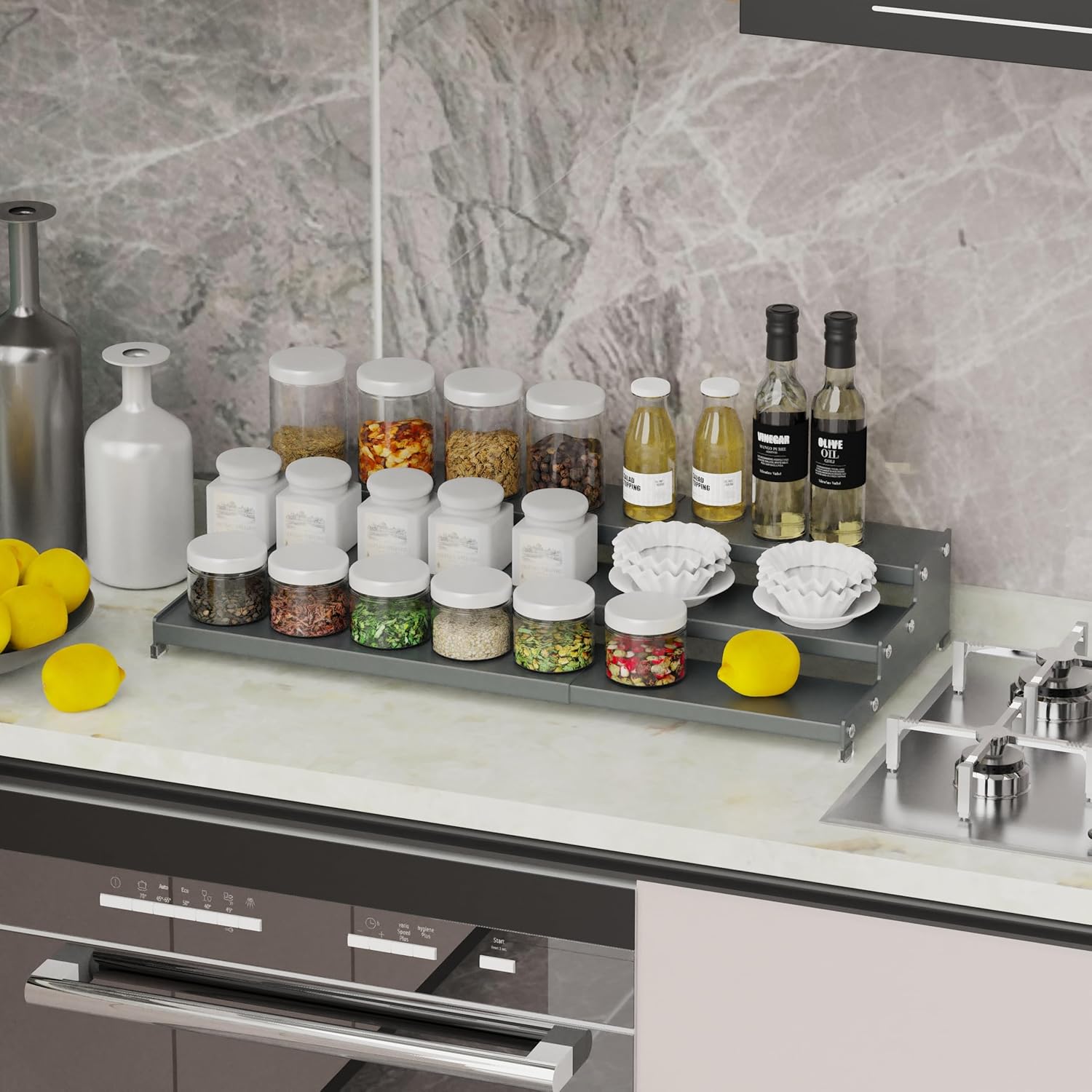 - ā[Multifunction]The kitchen 3-tier spice rack effectively saves countertop and cabinet space.Items are within easy reach,but out of view,keeping your kitchen looking organized and clean.Add a stylish look while keeping the room tidy.