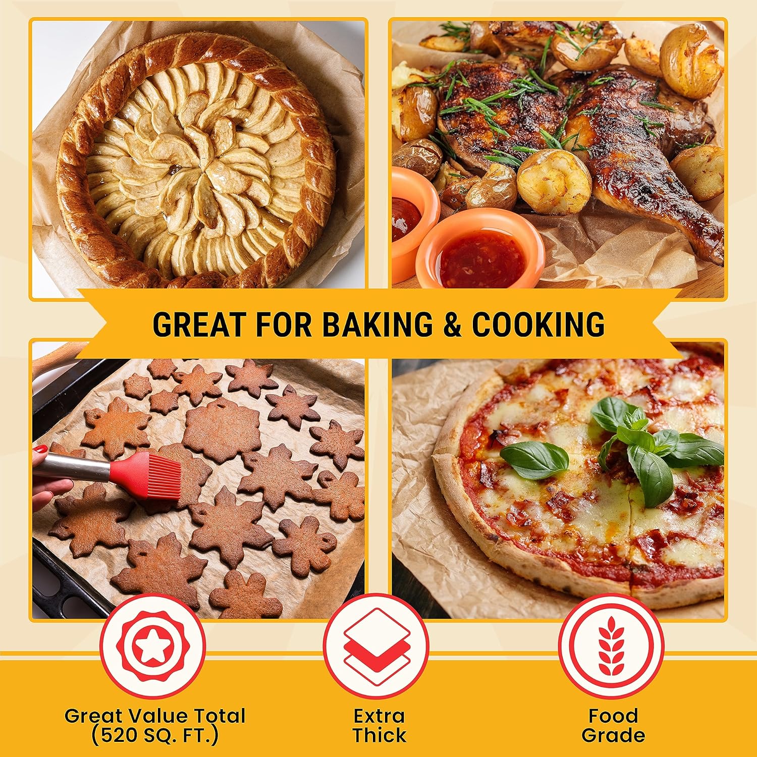 - STURDY CUTTER INCLUDED - Our baking paper for oven comes with a built-in cutter for precise and hassle-free tearing. Enjoy the perfect unbleached parchment paper sheet size, every time.
