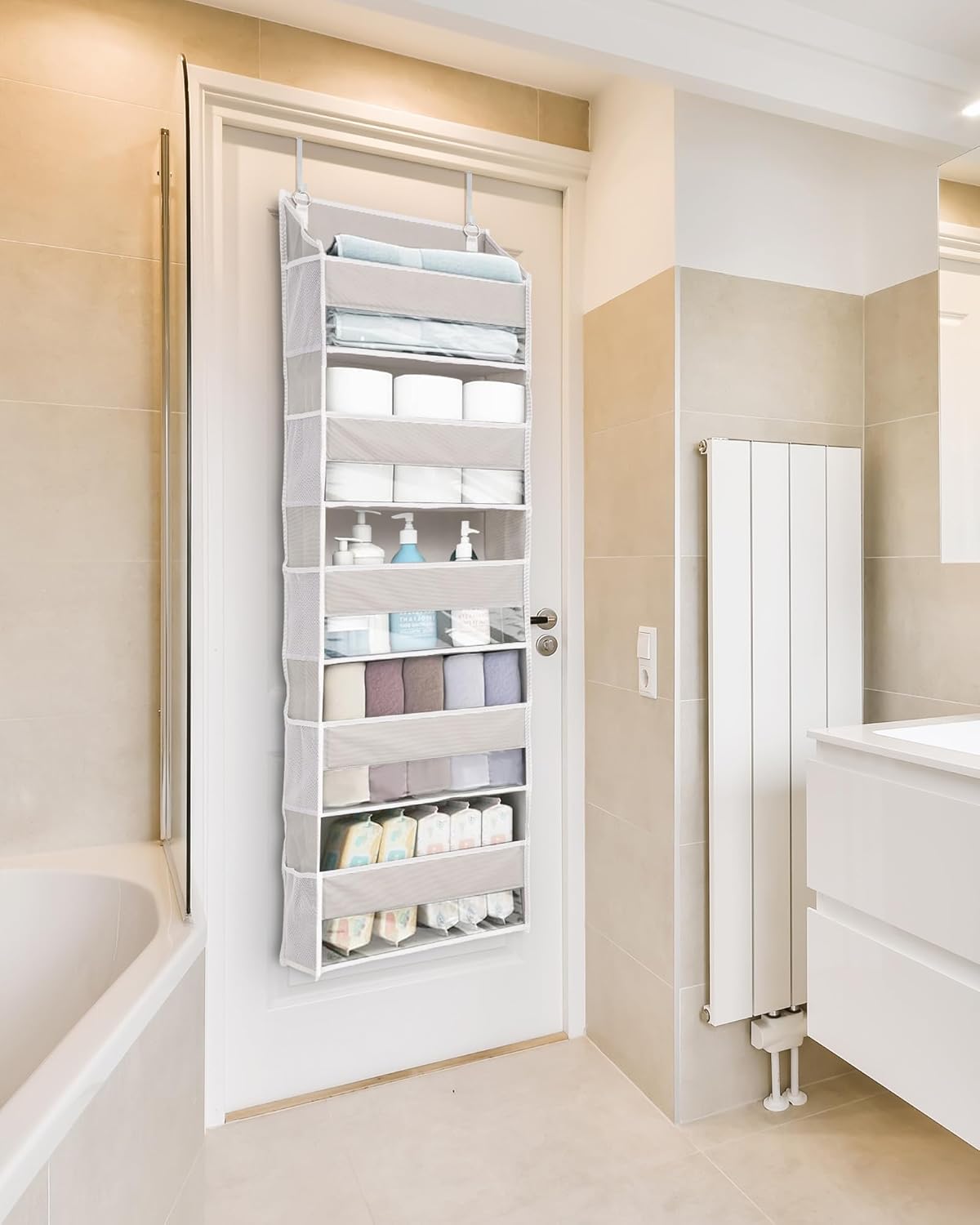 - Where Style Meets Utility: Perfect for every space! From children's rooms to offices, this versatile organizer accommodates toys, diapers, cosmetics, and more. Hang it effortlessly over doors (thickness < 1.85in) using the provided metal hooks. Make storage chic and hassle-free.