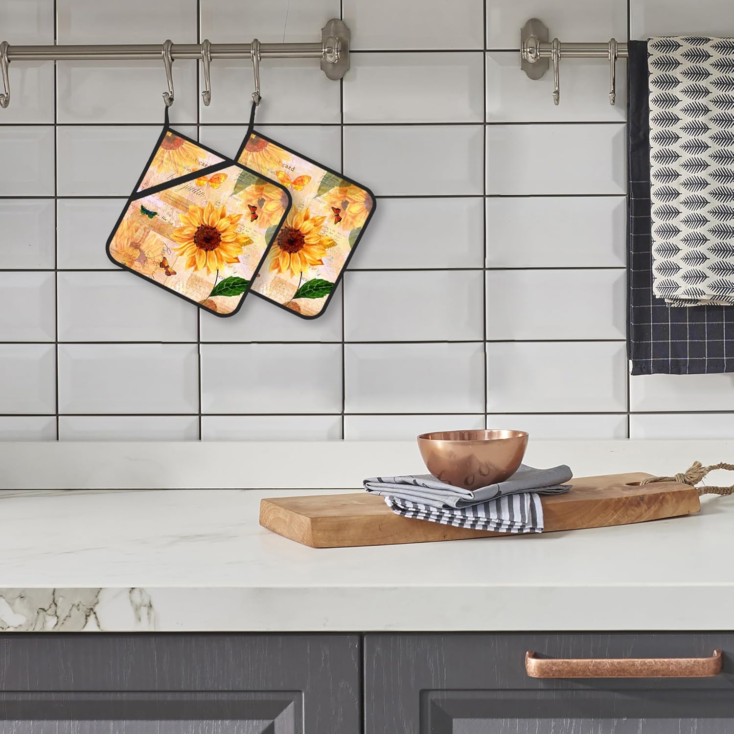 Pot Holder Set of 2,Vintage Sunflower Retro Kitchen Heat Resistant Potholder for BBQ Cooking Baking,Food Hot Pat for Women Men Kitchen Wear
