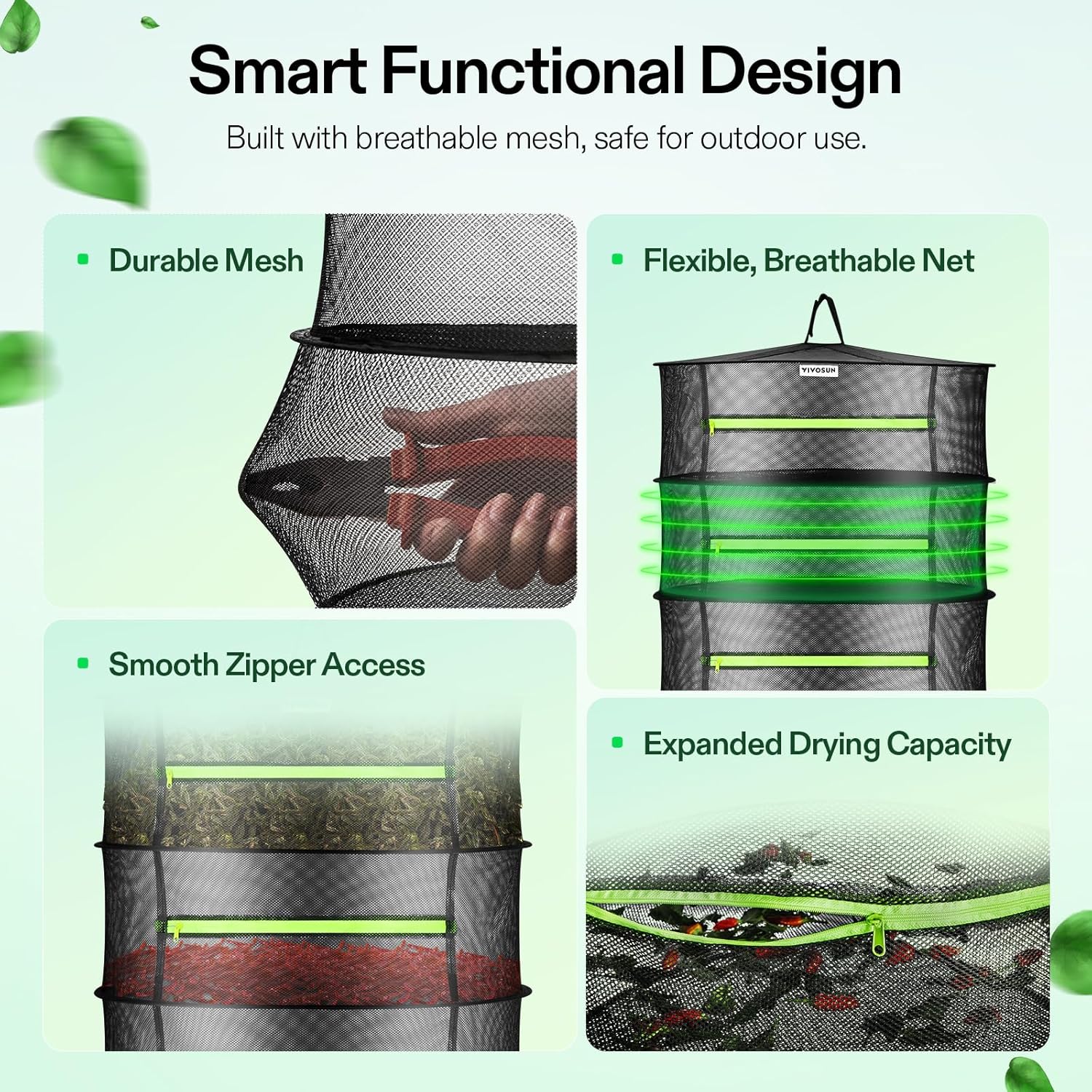 VIVOSUN 2-Pack 6-Layer Mesh Drying Rack Hanging Design with Green Zippers for Dehydrating, Indoor and Outdoor (Pruning Shears Included)